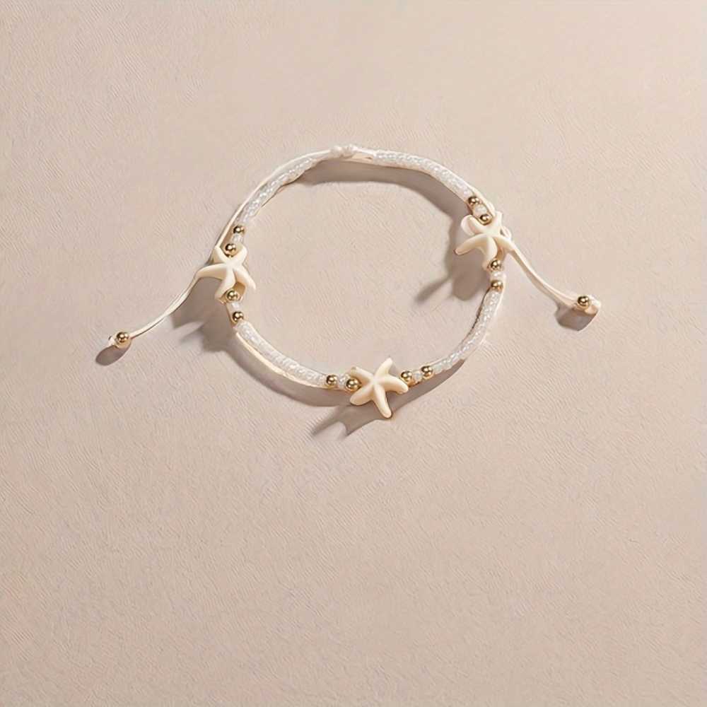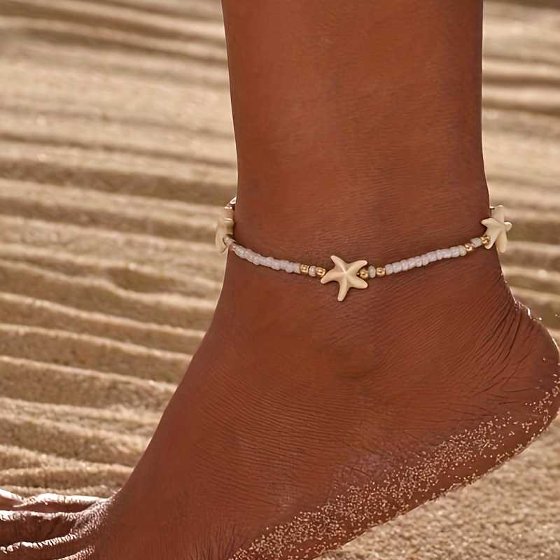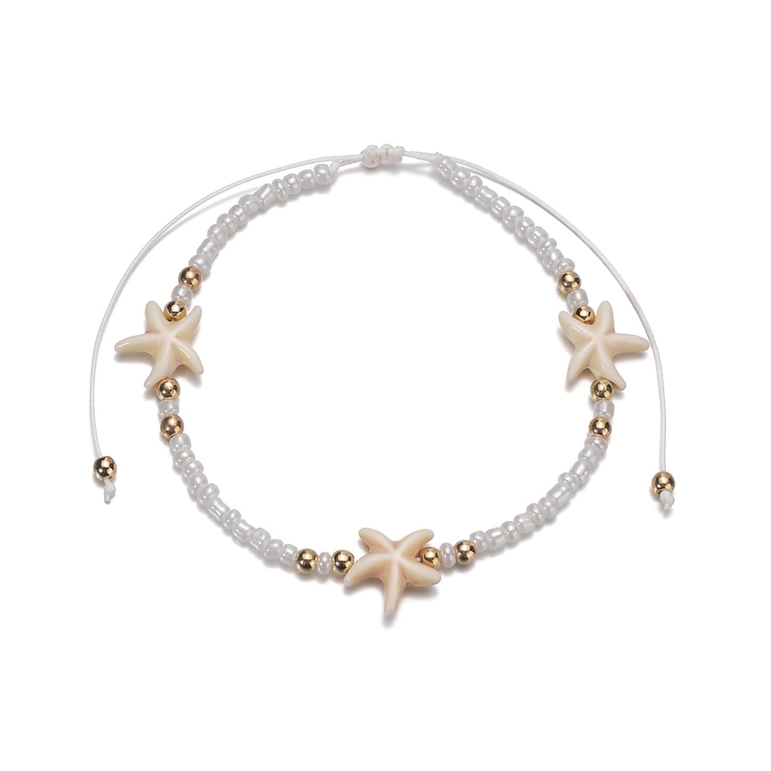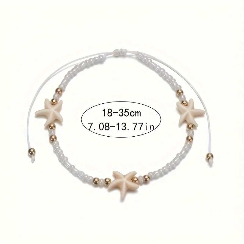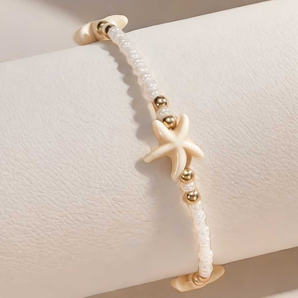 Women's Pearl Beaded Anklet Line Up With Starfish Charms