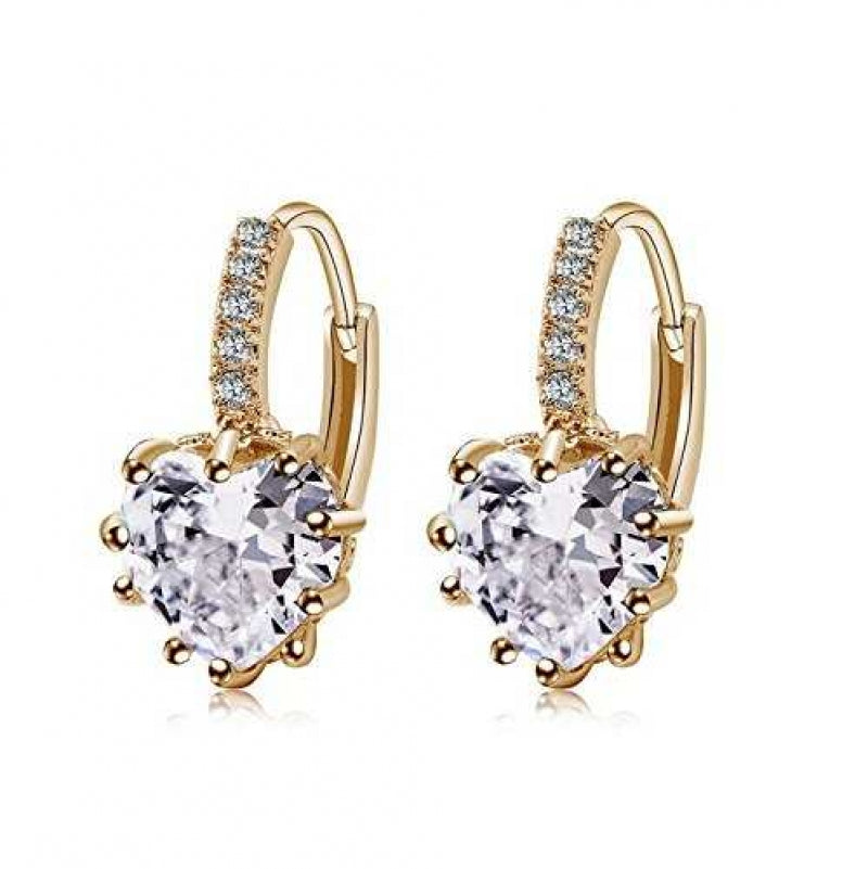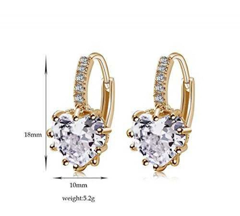Crafted in silver plated, each earring features a heart-shaped bright stone. The slender ear wire is lined with shimmering stones accents to complete the style. These dainty heart earrings are secured with hinged backs.