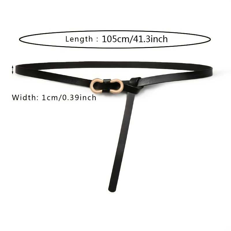 - Product Particulars: This 8 Shape Buckle Thin Belt for Women is crafted from high quality faux leather and features an eye catching 8 shape buckle. Designed for adjustable comfort, this stylish belt is perfect for cinching dresses, skirts, or high waisted pants.