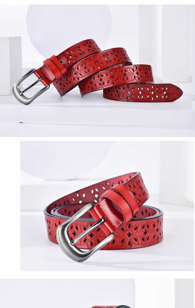 - Product Particulars: This New Fashionable Genuine Leather Belt is crafted from high quality cowhide leather, featuring a sleek needle buckle and an eye catching hollow design. Designed for versatility, this belt provides a secure fit and comfort for all day wear.