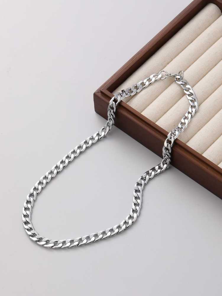 Stainless Steel Silver Plated Cuban Link Chain With Lobster Closure