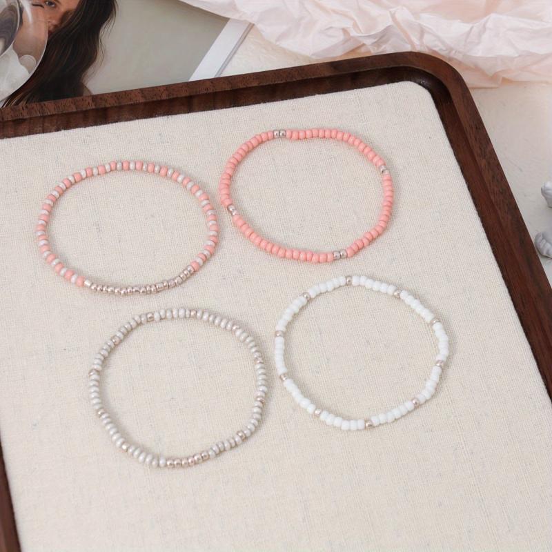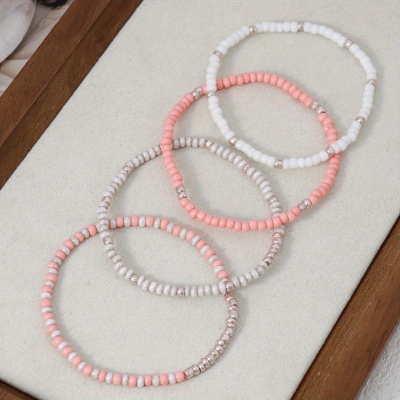 Elevate your style with this 4-piece boho beaded stretch bracelet set. These handcrafted elastic bead bracelets are versatile for daily wear or party jewelry. Perfect for friendship wristbands or to add a pop of color to any outfit.