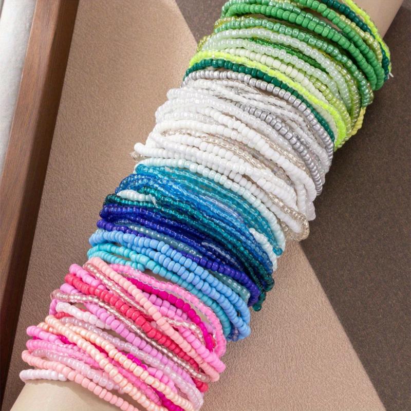 This set includes 20pcs of bohemian style elastic bracelets with a gradient seed bead design. Perfect for adding a pop of color to your outfit.