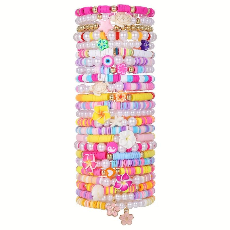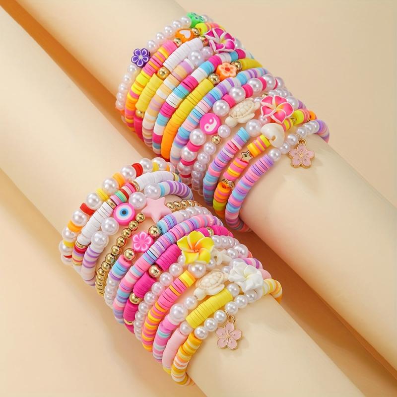 Embrace the boho spirit with this charming bracelet set featuring sunflowers and turtles. Handcrafted from polymer clay, this Hawaiian-inspired set adds a touch of nature to your style.
