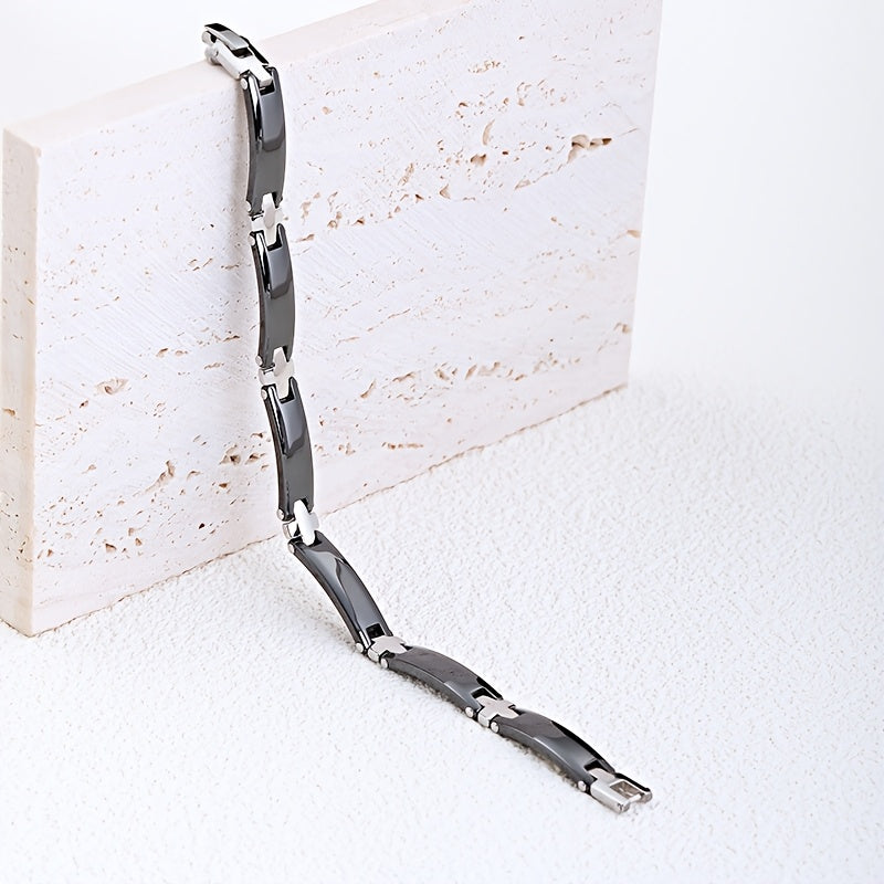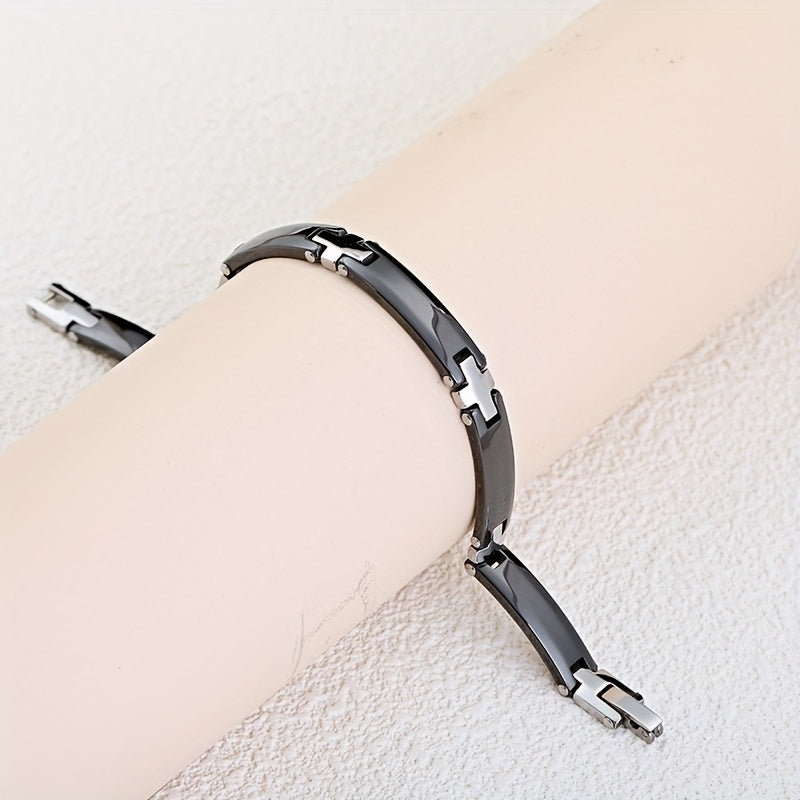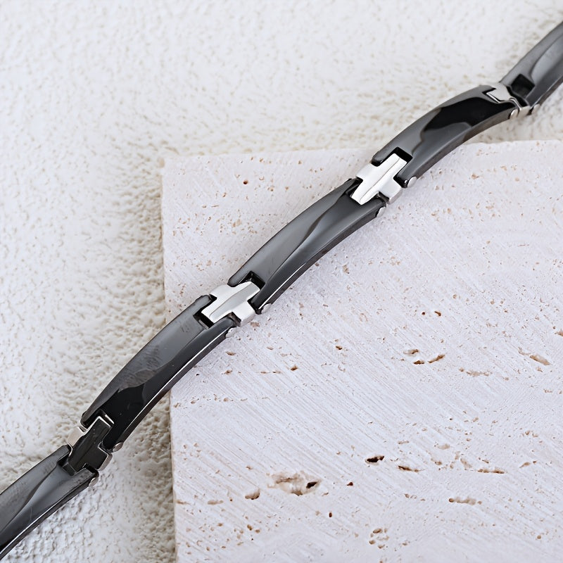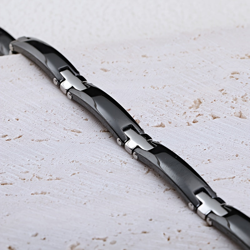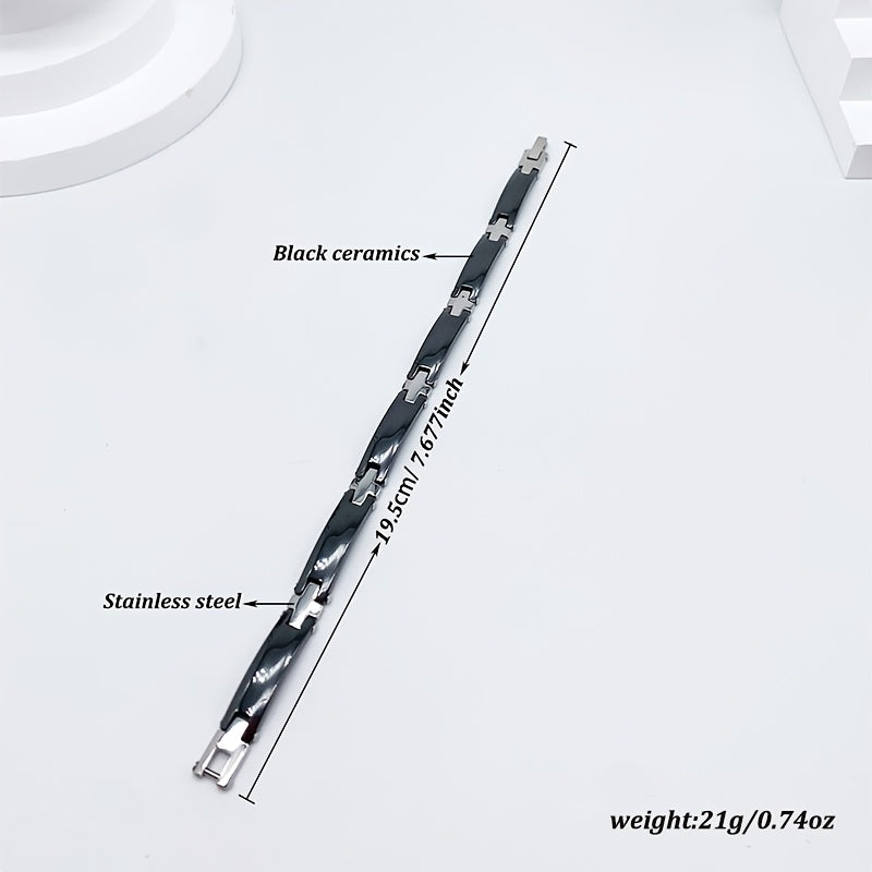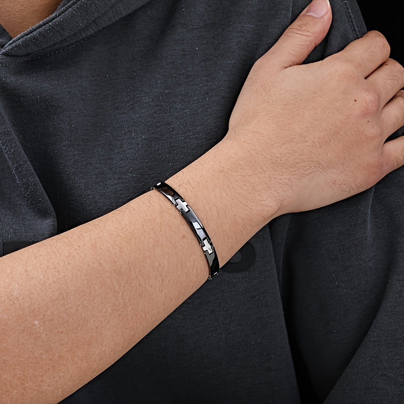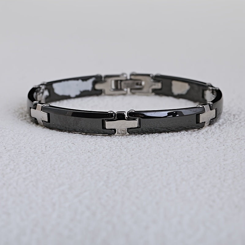 This sleek ceramic bracelet features a cross design with zirconia, perfect for December birthdays. The minimalist style is ideal for both men and women, and the stainless steel clasp ensures durability.