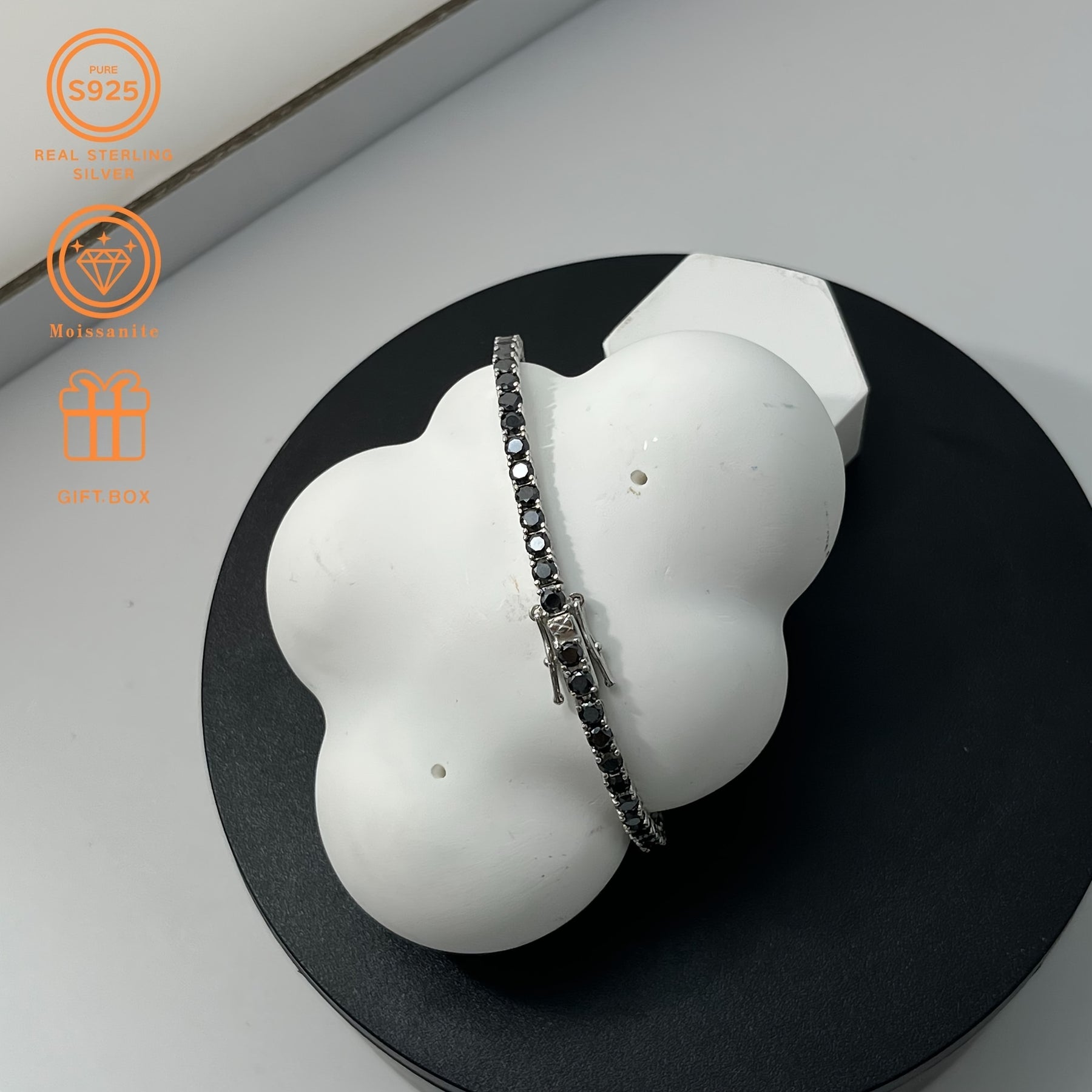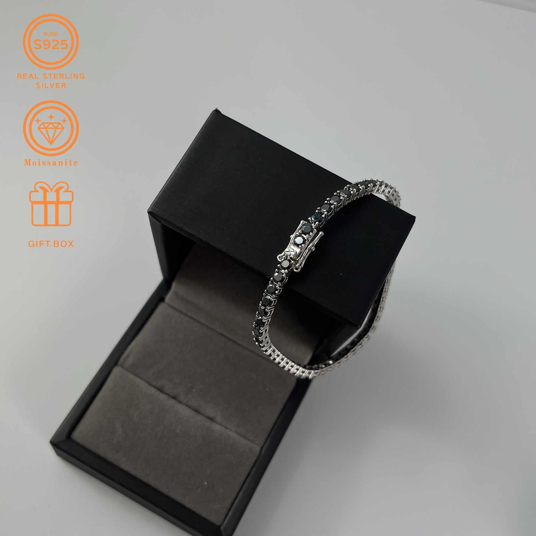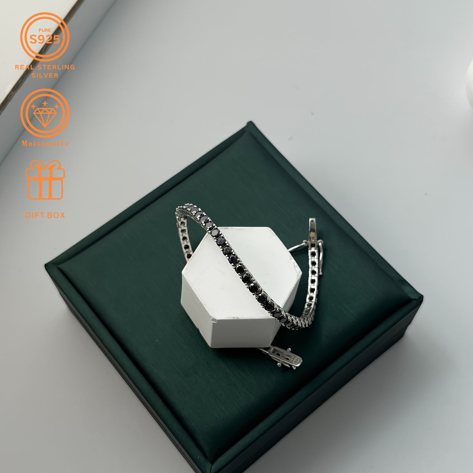 A stunning tennis bracelet featuring a single 0.1 carat moissanite stone set in high-quality S925 silver. This bracelet exudes elegance and grace, weighing about 9.6 grams.