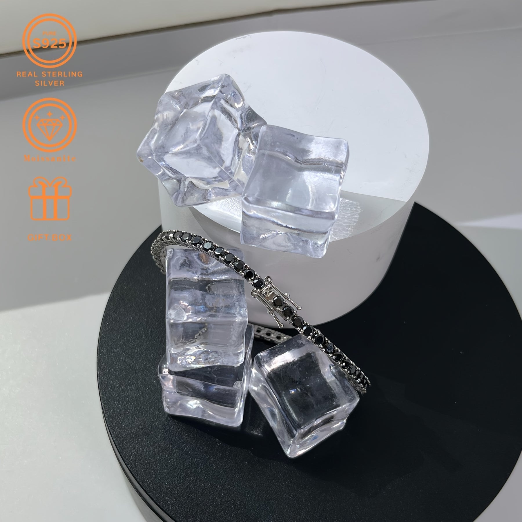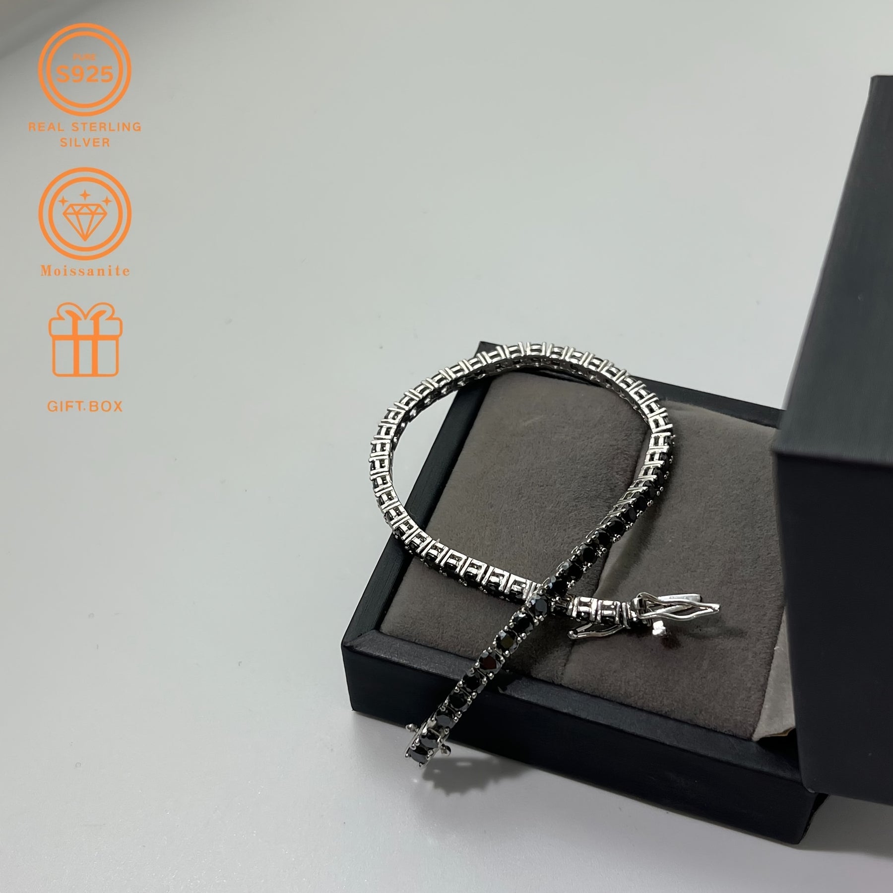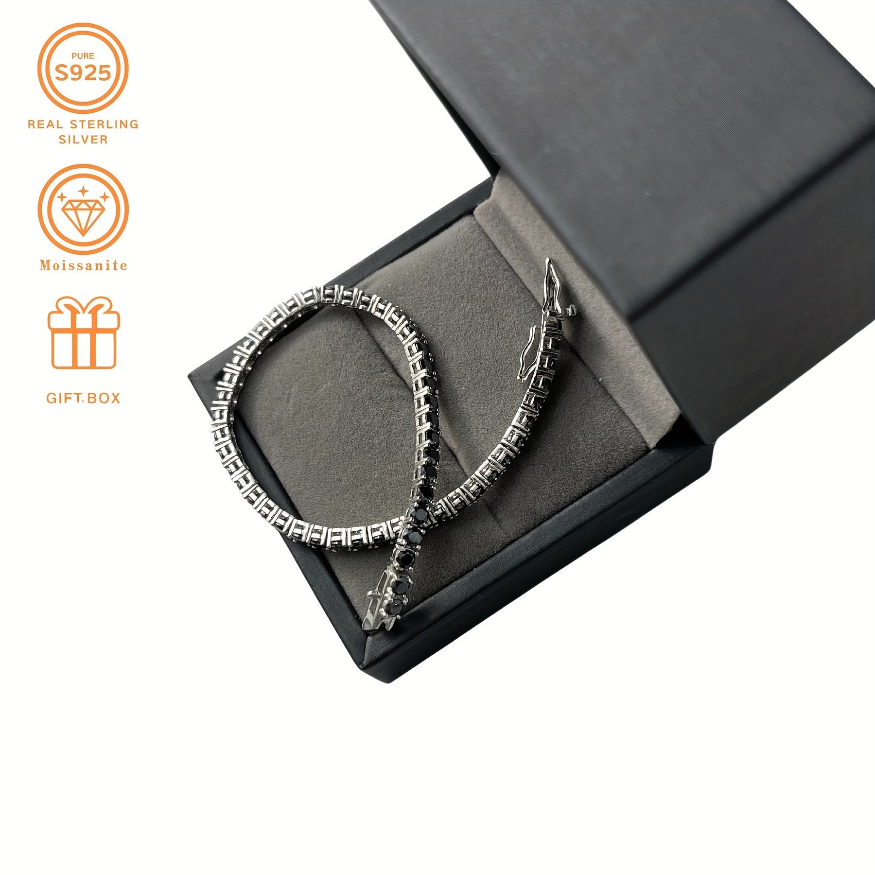 A stunning tennis bracelet featuring a single 0.1 carat moissanite stone set in high-quality S925 silver. This bracelet exudes elegance and grace, weighing about 9.6 grams.