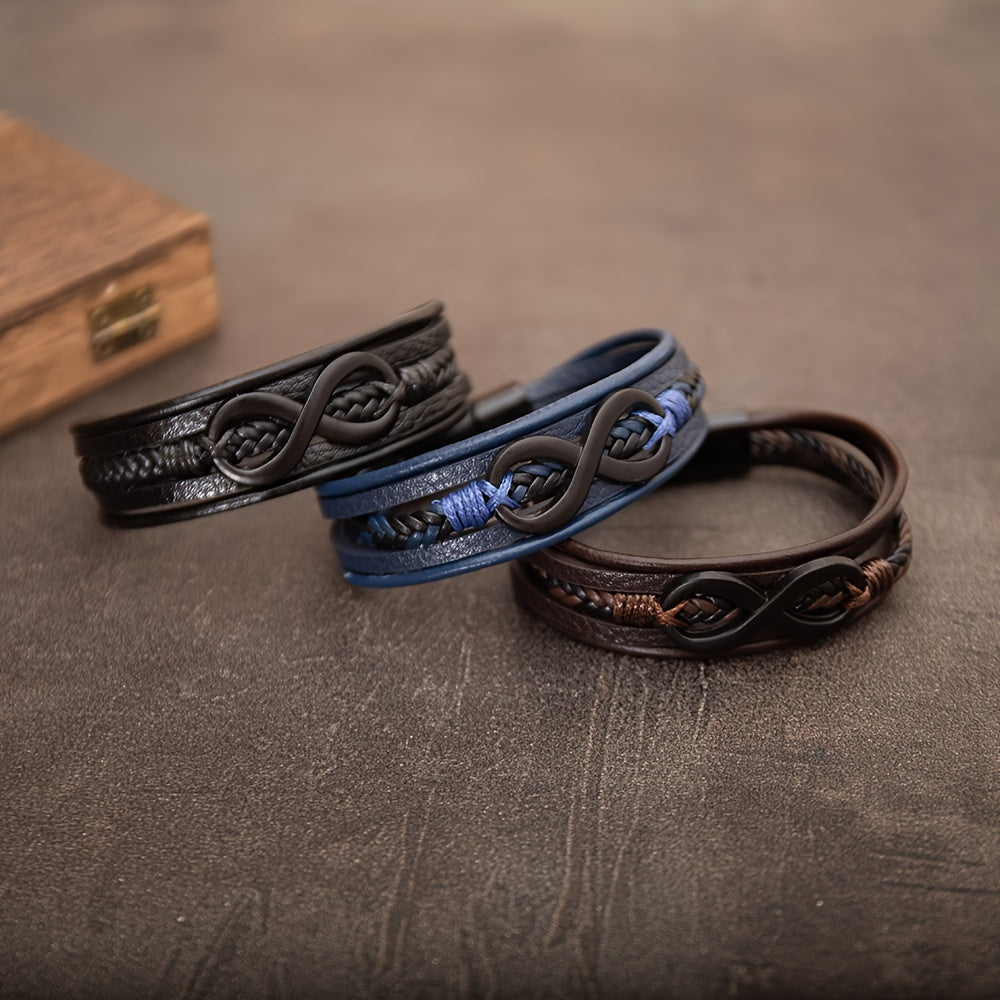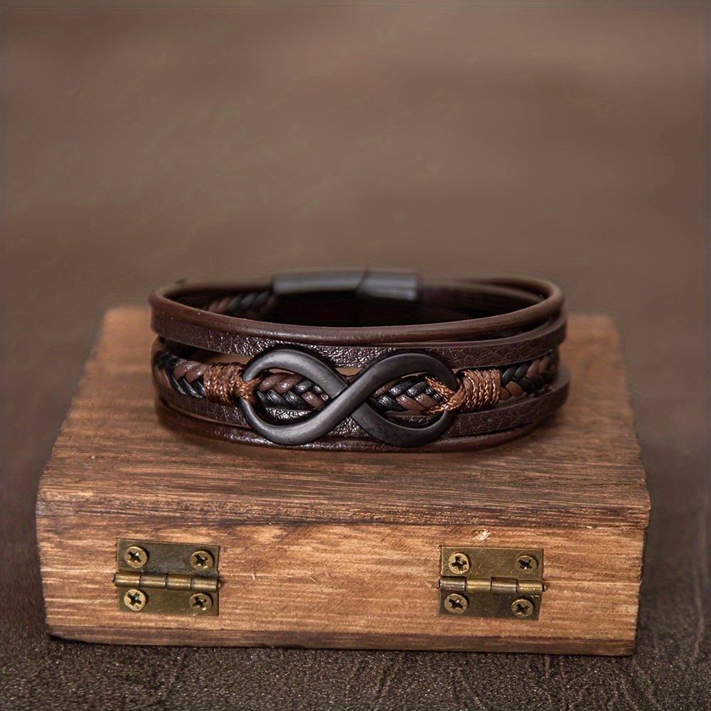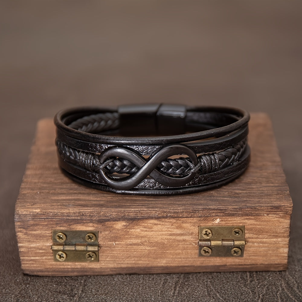 Men's Leather Bracelet with Infinity Symbol and Magnetic Clasp