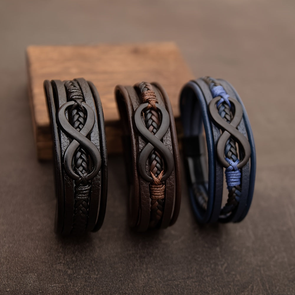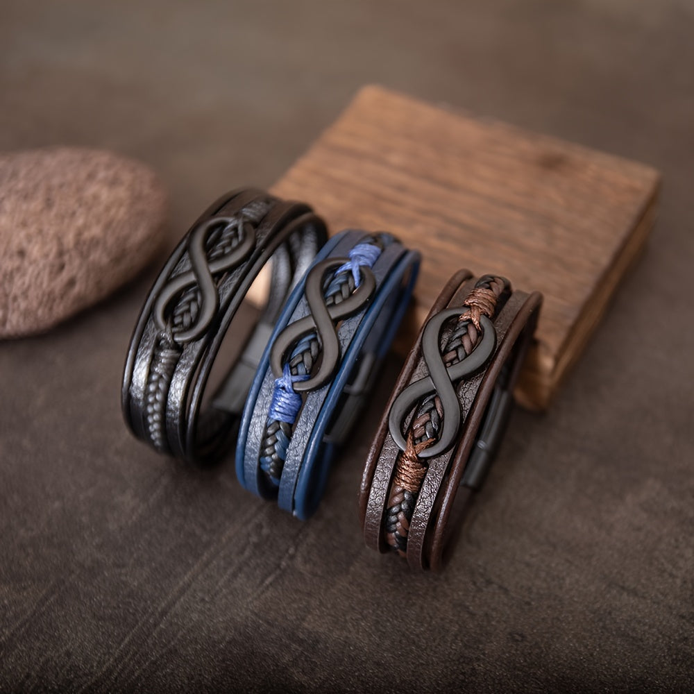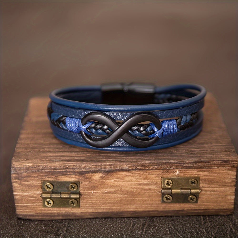 This stylish bracelet features an infinity symbol detail and a convenient magnetic clasp. Made from high-quality PU leather, perfect for everyday wear.