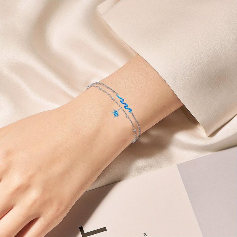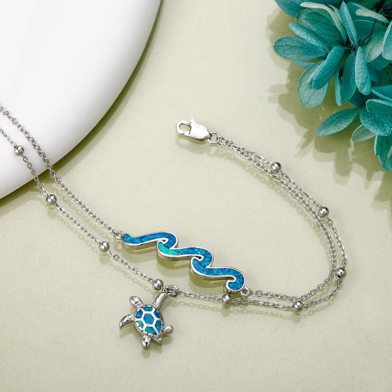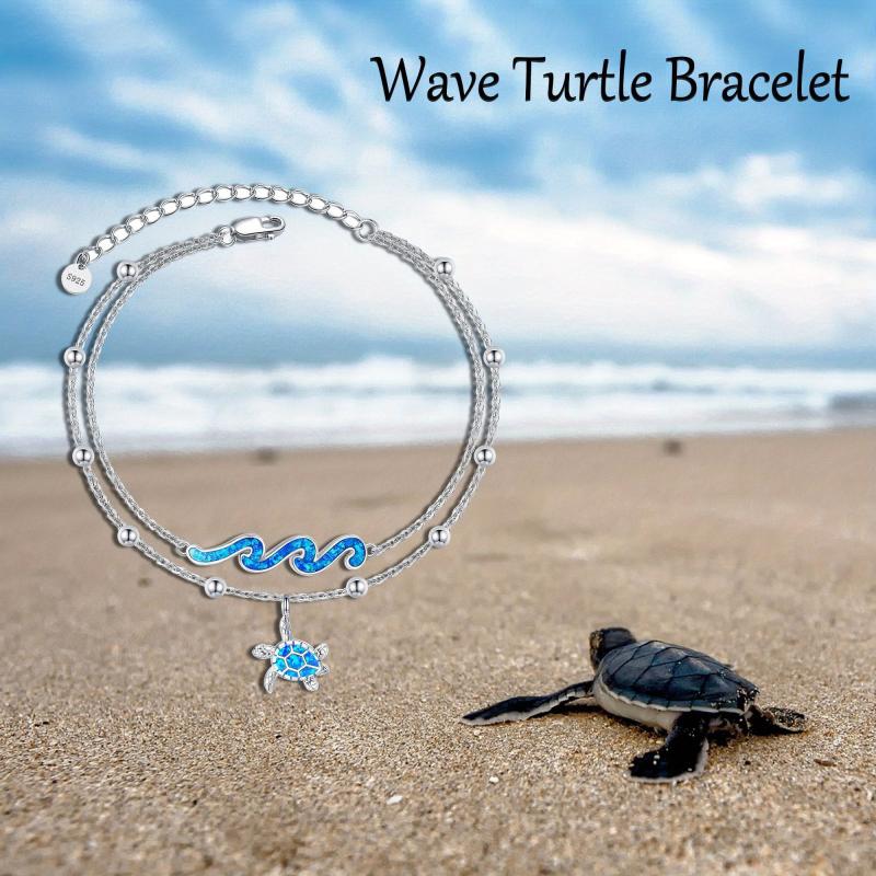 Embrace the ocean vibes with this stunning turtle wave bracelet. Handcrafted with opal stones and sterling silver, this piece is perfect for beach lovers.