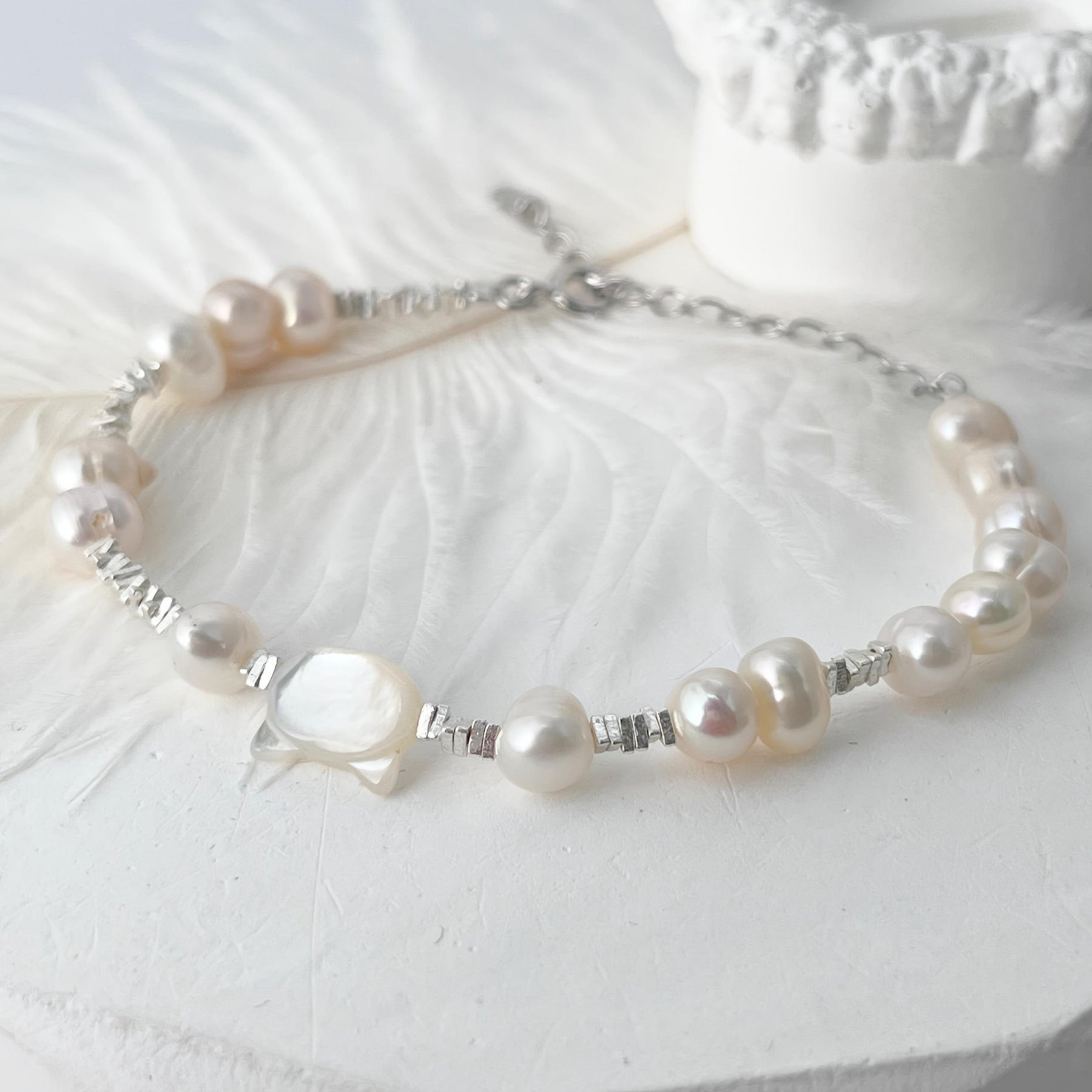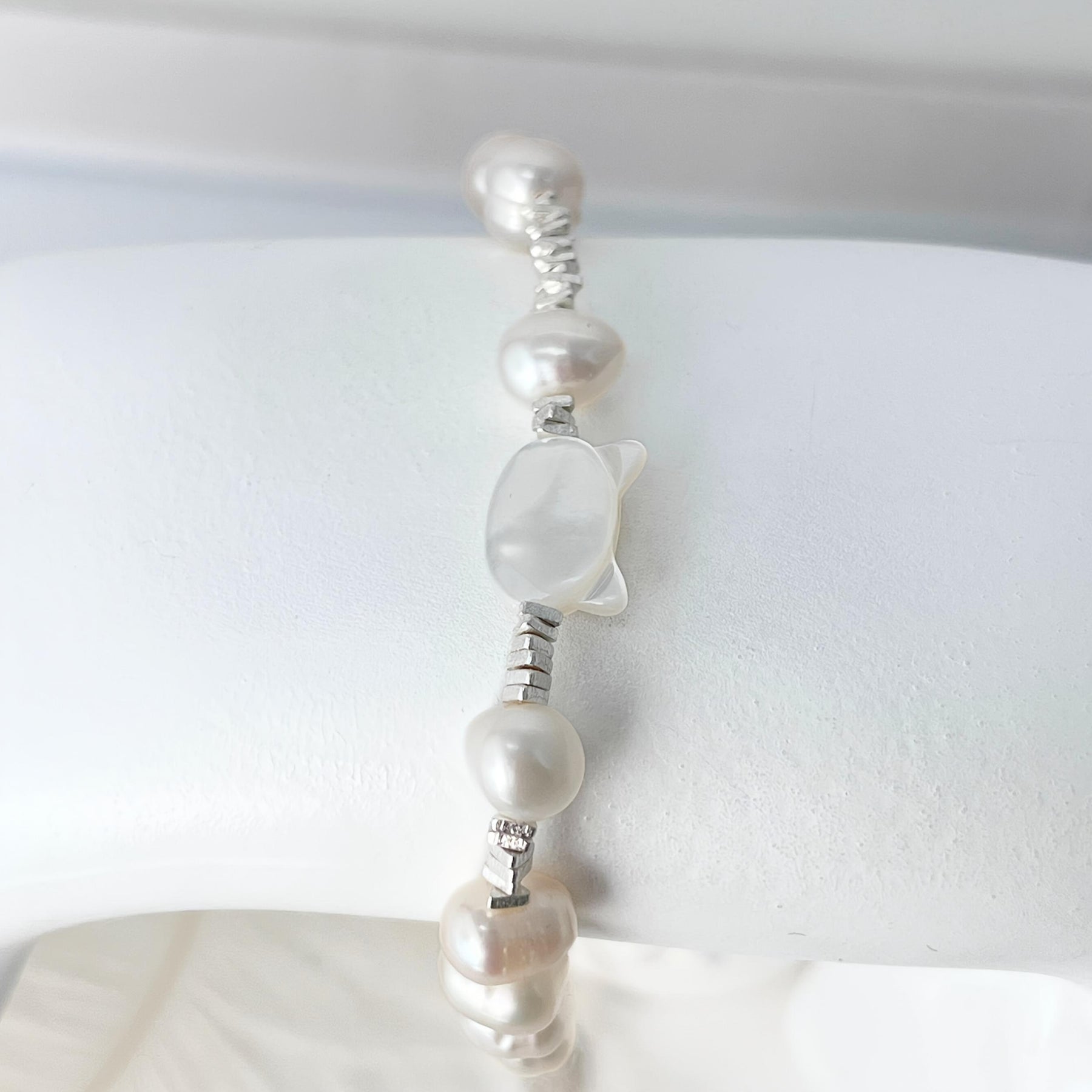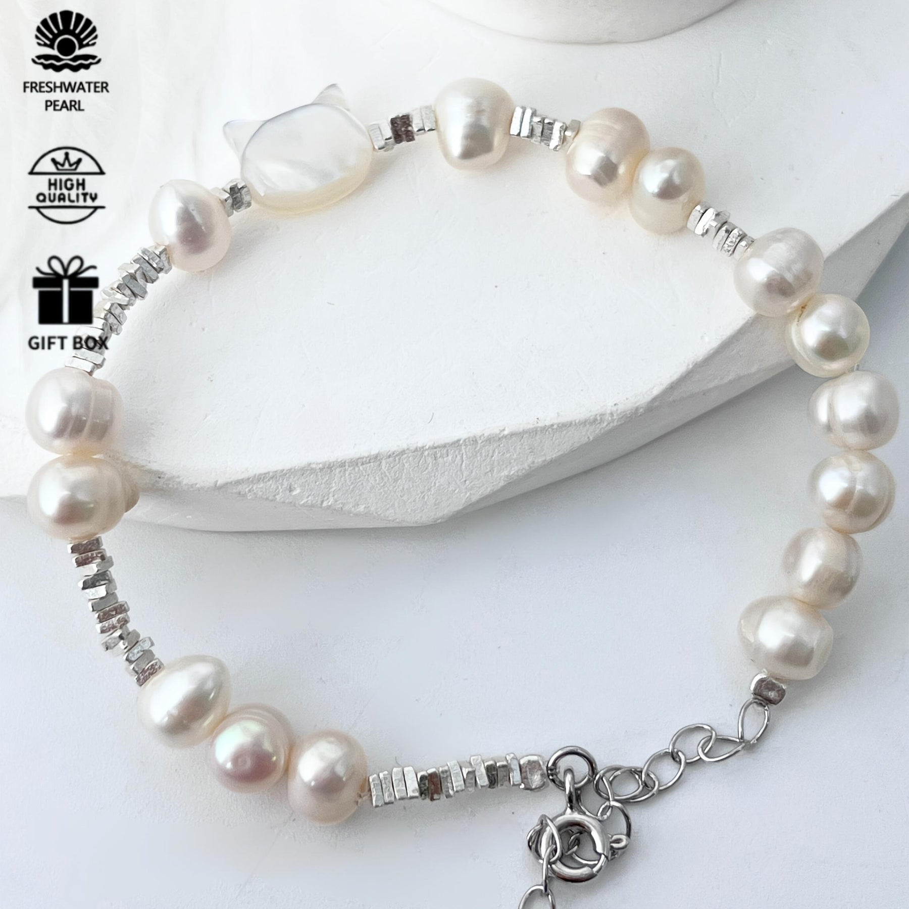 Elegant bracelet featuring S925 silvery and freshwater pearls, perfect for daily wear. A great gift for friends on birthdays and holidays. Surprise them with this stylish accessory!