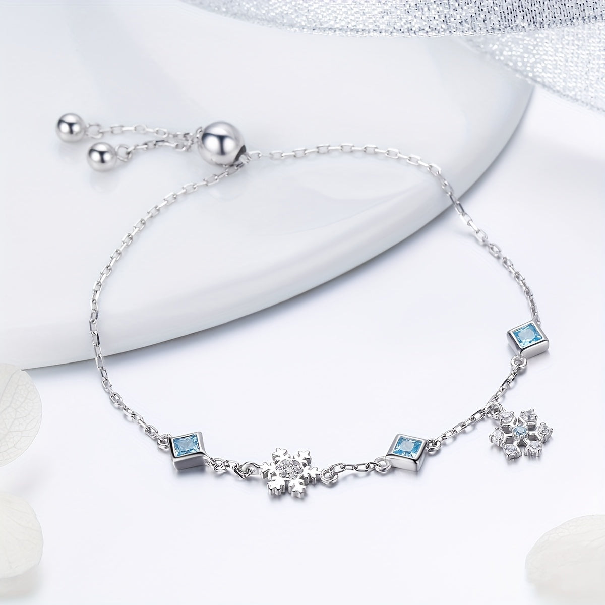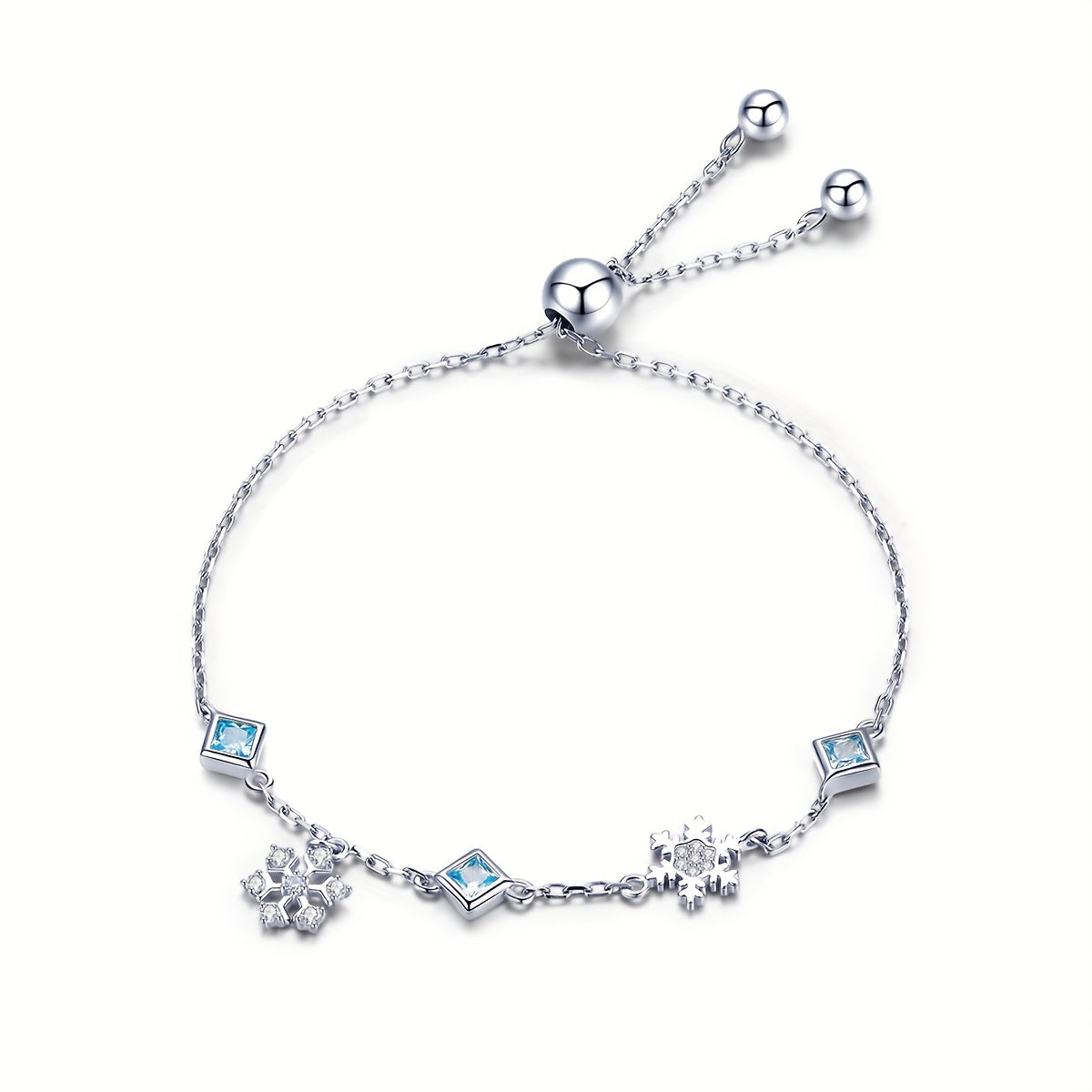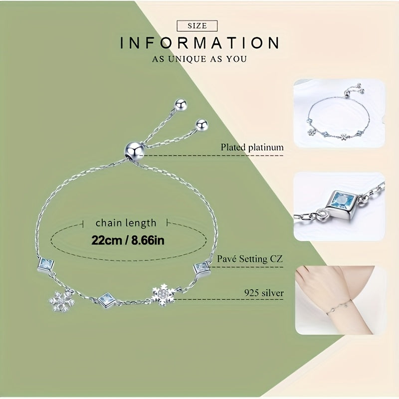 Add a touch of winter magic with this elegant bracelet featuring platinum plated snowflakes adorned with sparkling zirconia crystals.