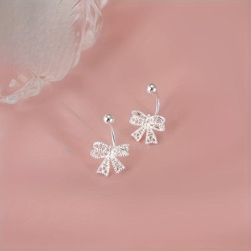 These stylish bow earrings are made of s925 silver and feature a unique curved hook design. They are hypoallergenic and lightweight, making them comfortable to wear all day long. A perfect gift choice for women.