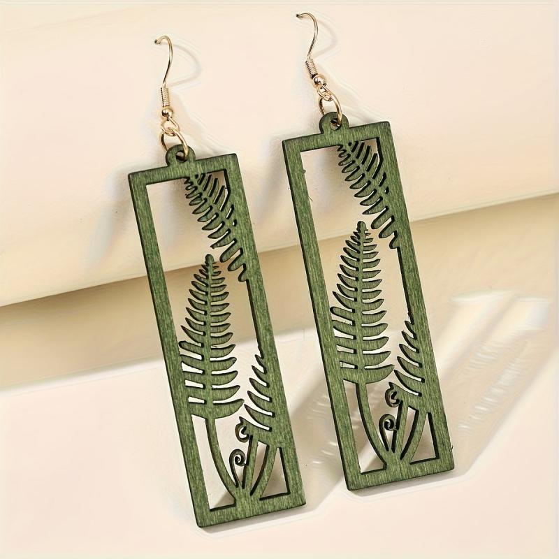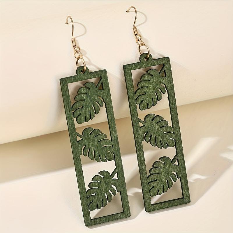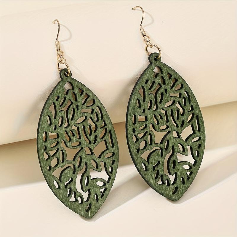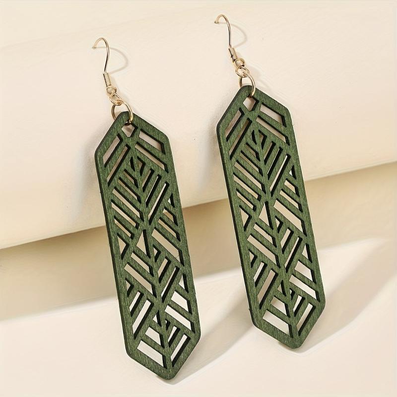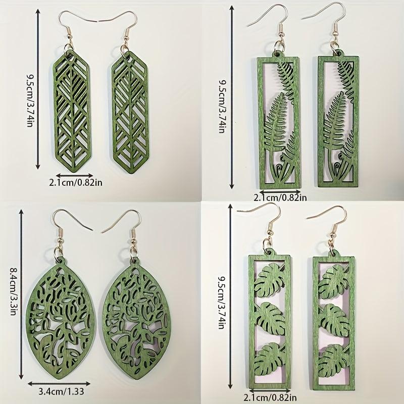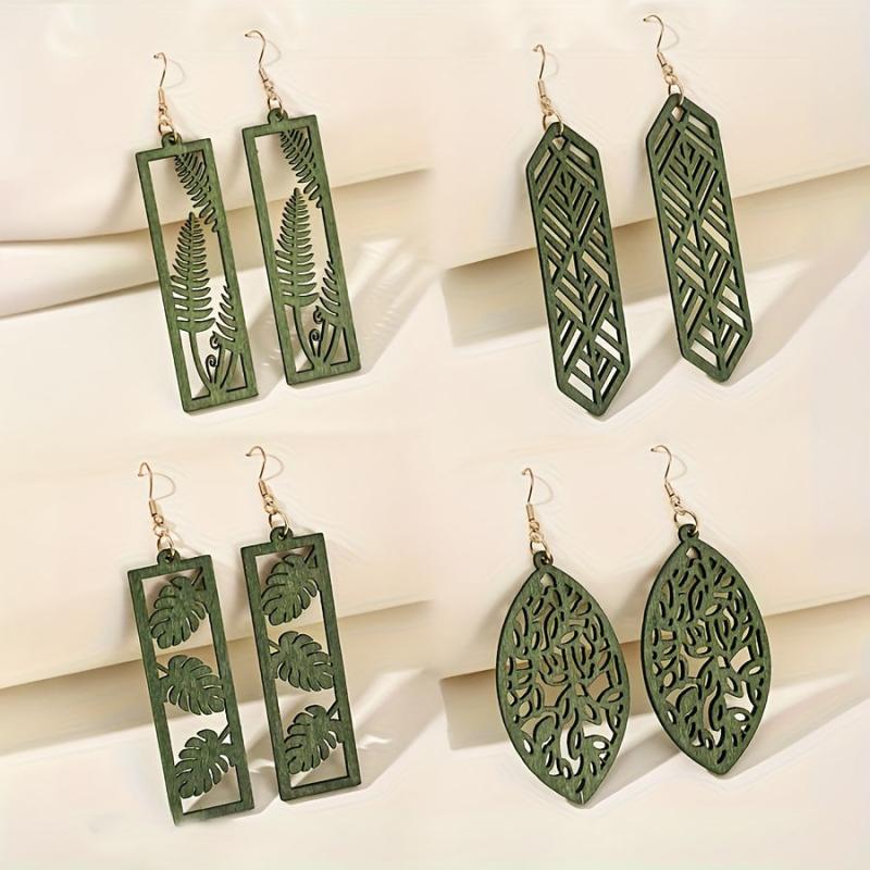 This 4 pairs set of light green hollow geometric pattern pendant earrings is perfect for adding a bohemian touch to your casual outfits. Makes a great gift for women.