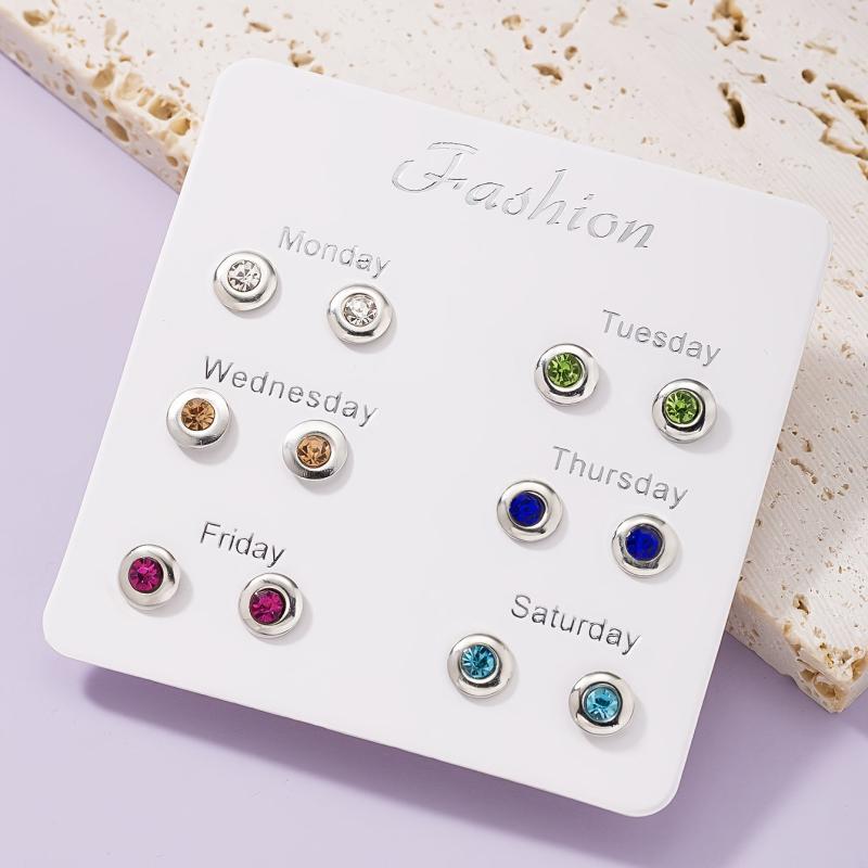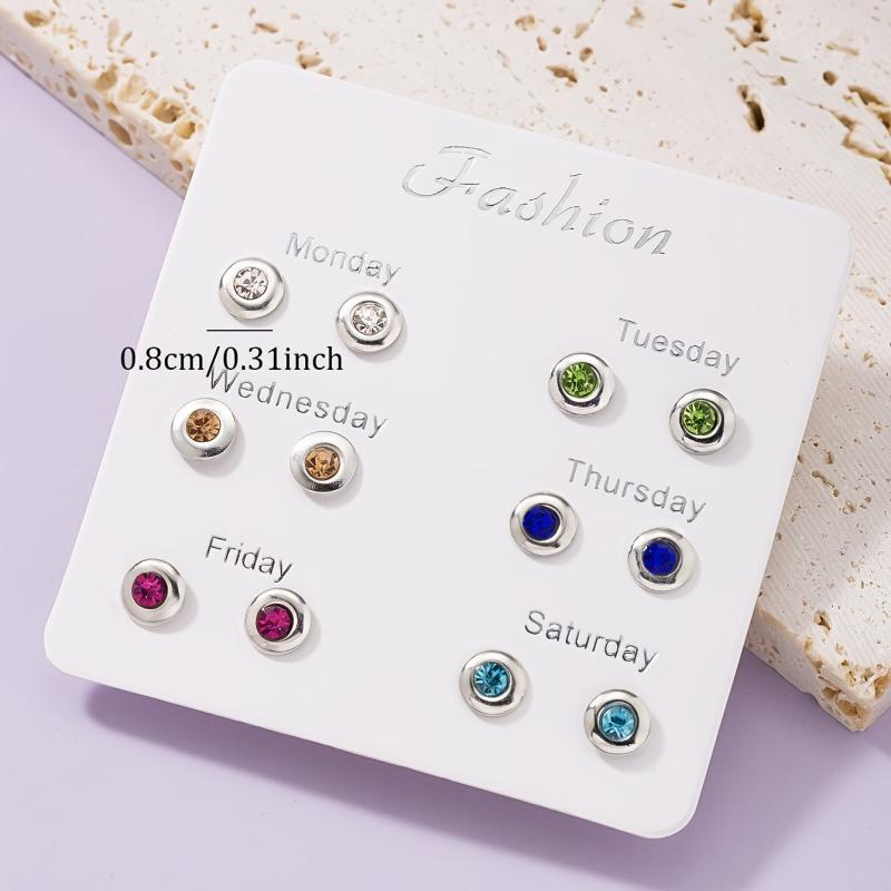 Add a touch of elegance to any outfit with this 6 pairs of rhinestone earrings set featuring stainless steel posts. Suitable for all seasons.