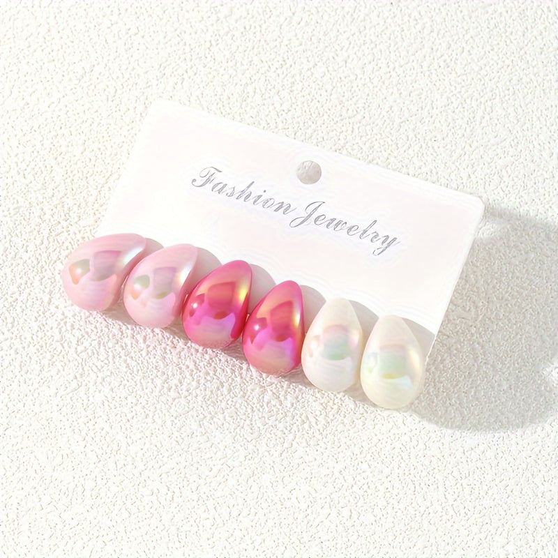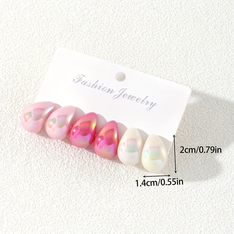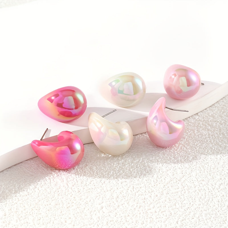 6PC Pink Series Ladies' Earring Set Resin Jewelry Stainless Steel Ear Needle