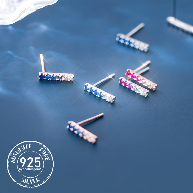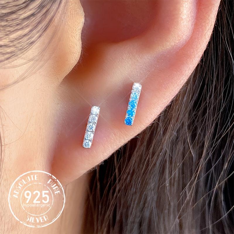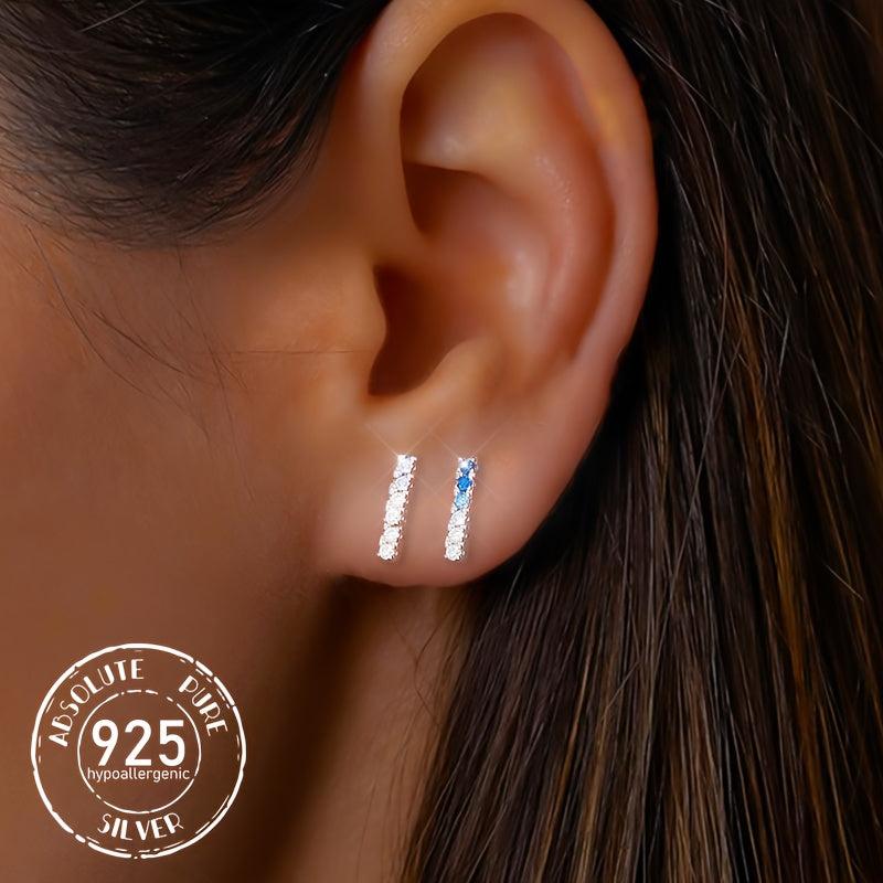 These stylish 925 sterling silver stud earrings feature synthetic cubic zirconia. Perfect for daily wear and suitable for all seasons.