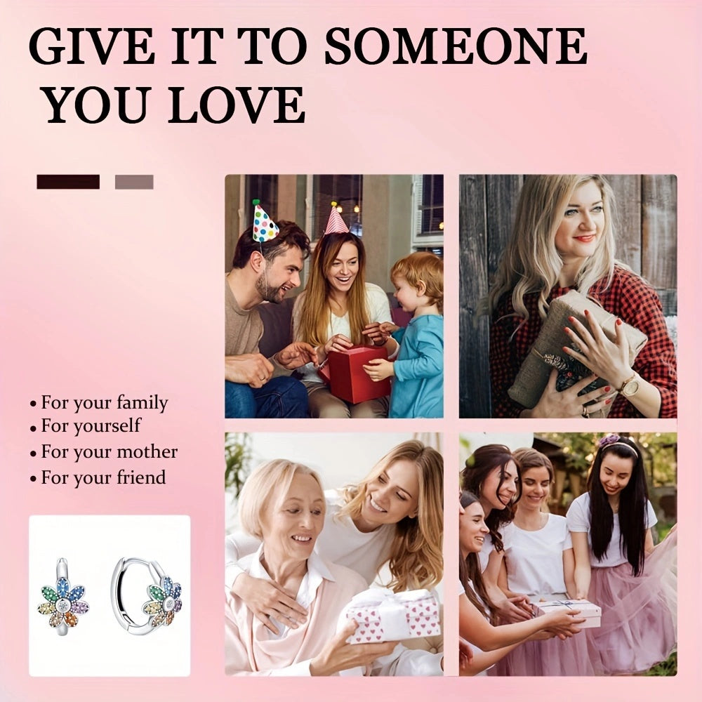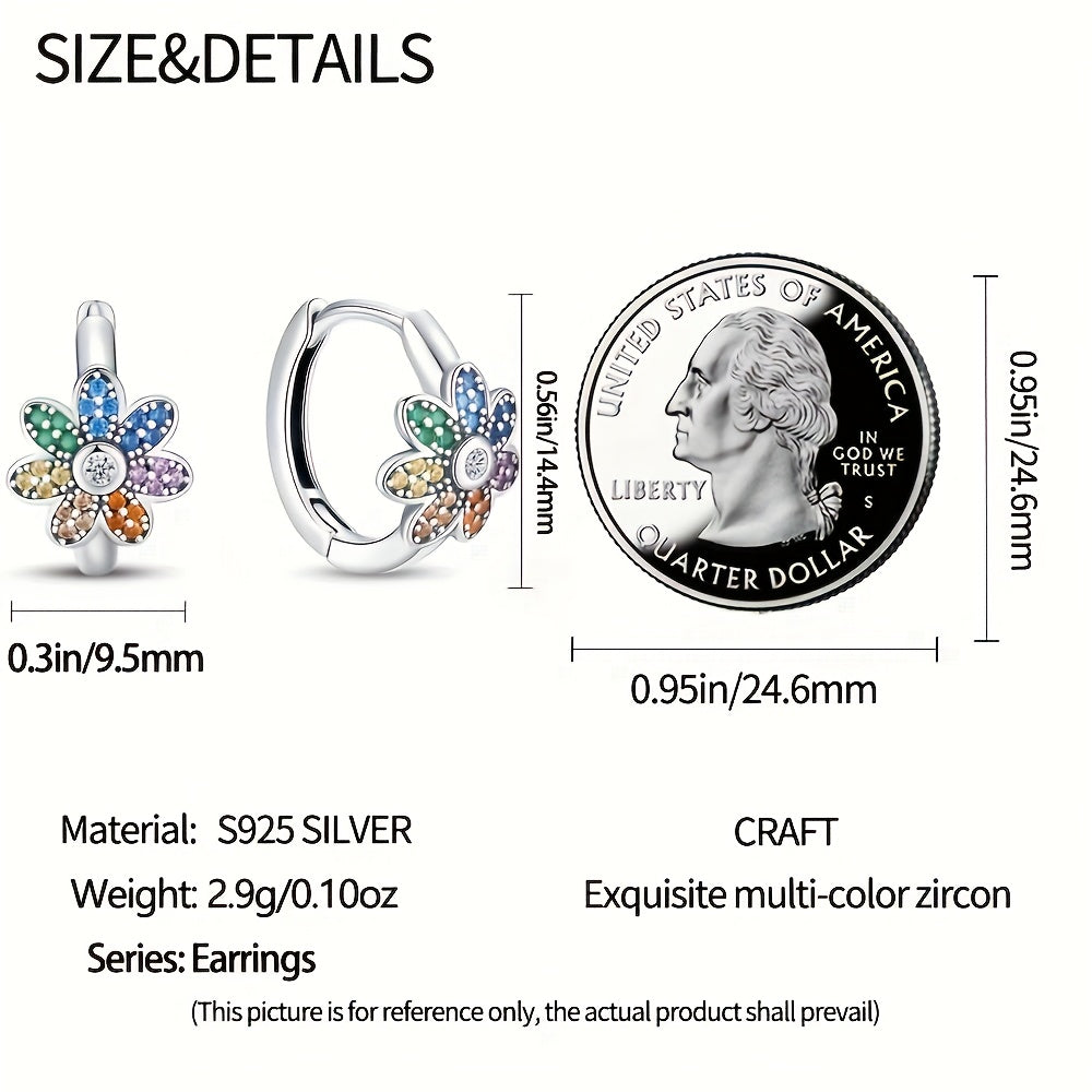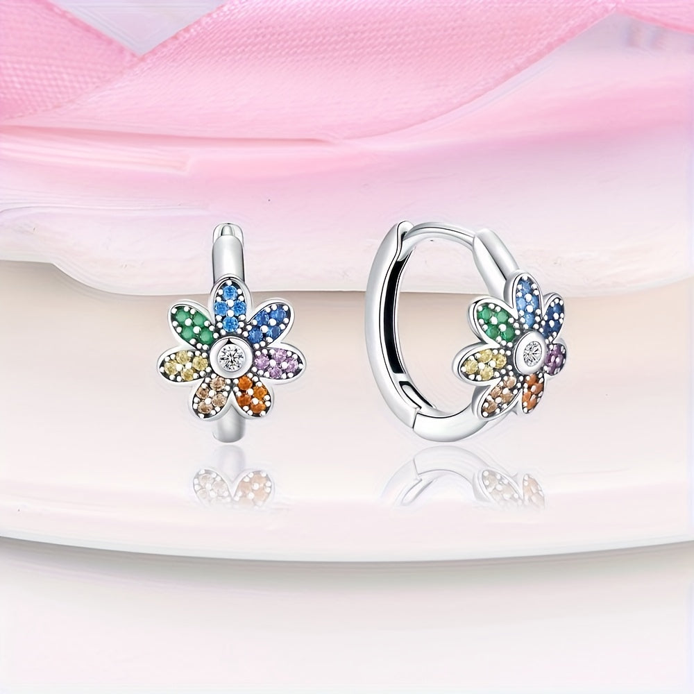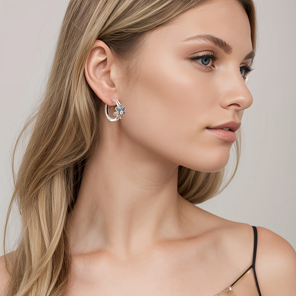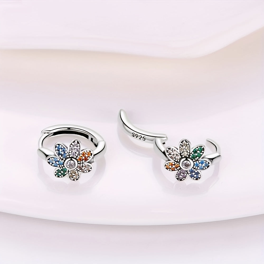 Elegant 925 silver flower hoop earrings featuring synthetic zirconia. Perfect for daily wear or special occasions, these earrings make a great gift for women.