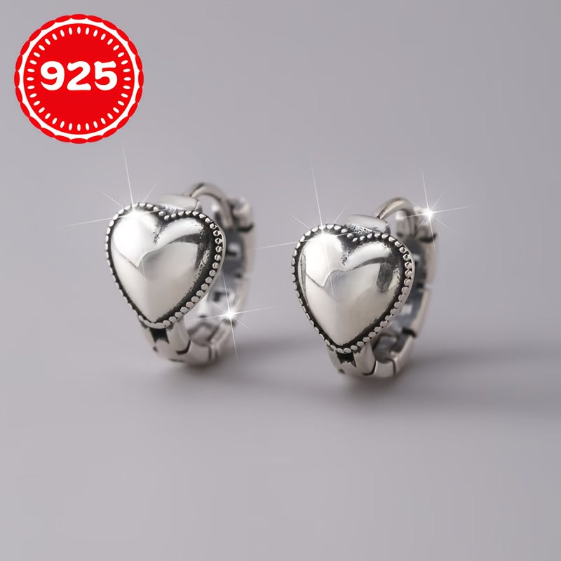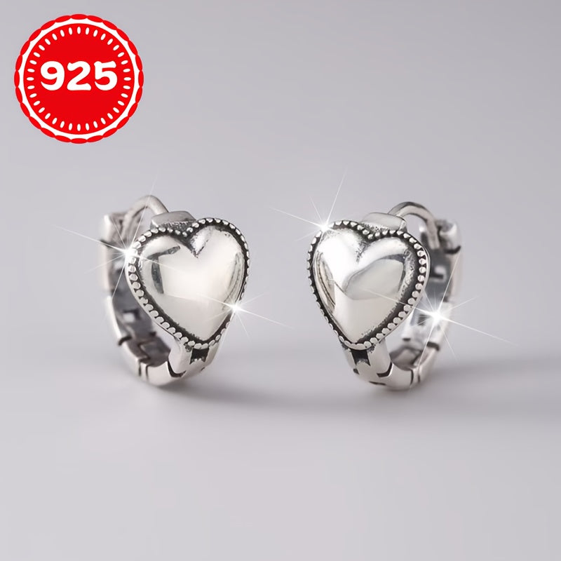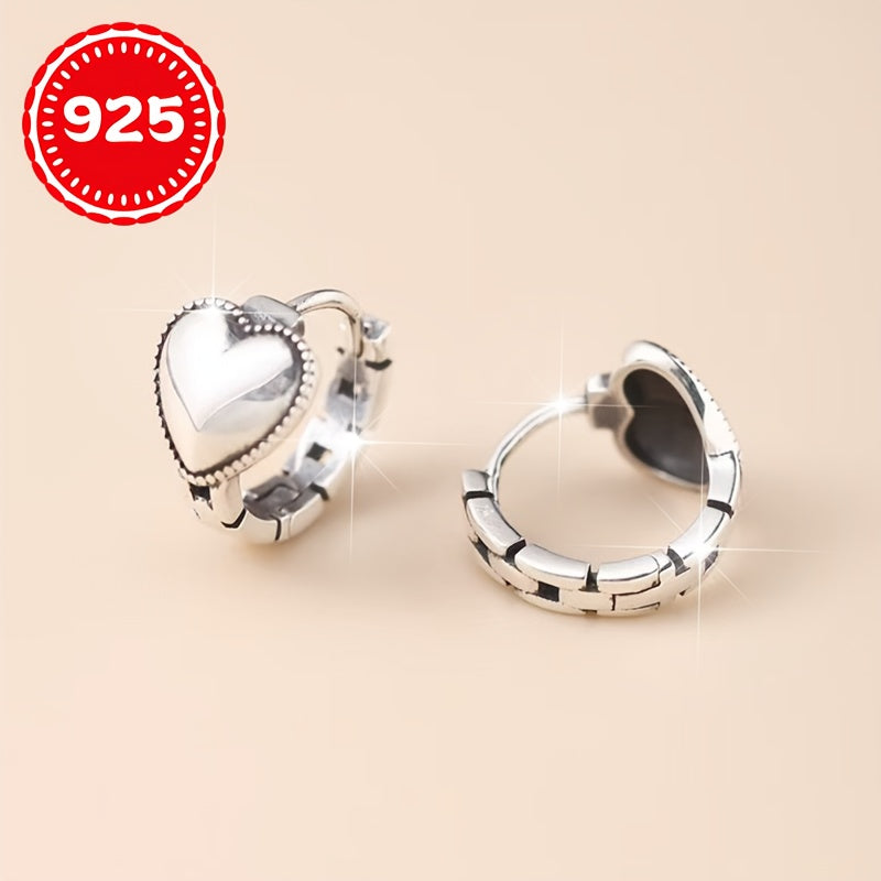 These vintage heart-shaped stud earrings are made of 925 silver and plated with a low-allergy material, perfect for everyday wear and special occasions. Ideal accessory for holidays, Ramadan, Mother's Day, beach vacations, and more.
