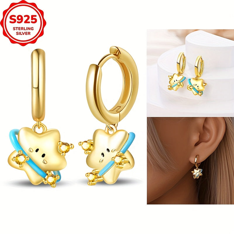 925 Silver High Women'S Dangle Earrings Star Earrings