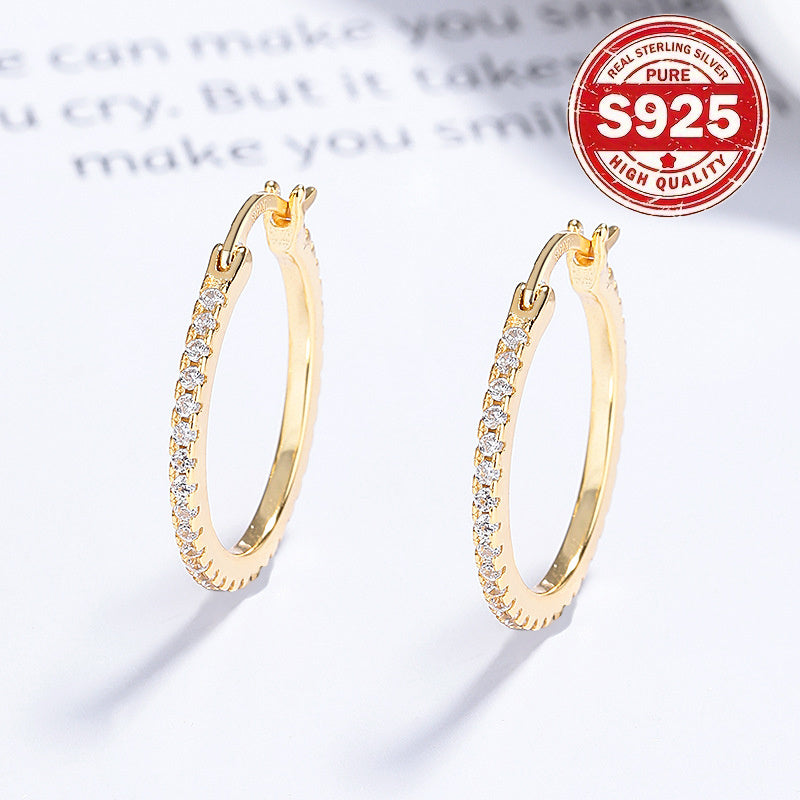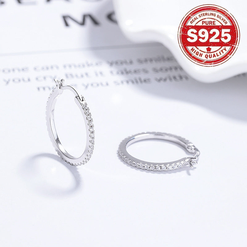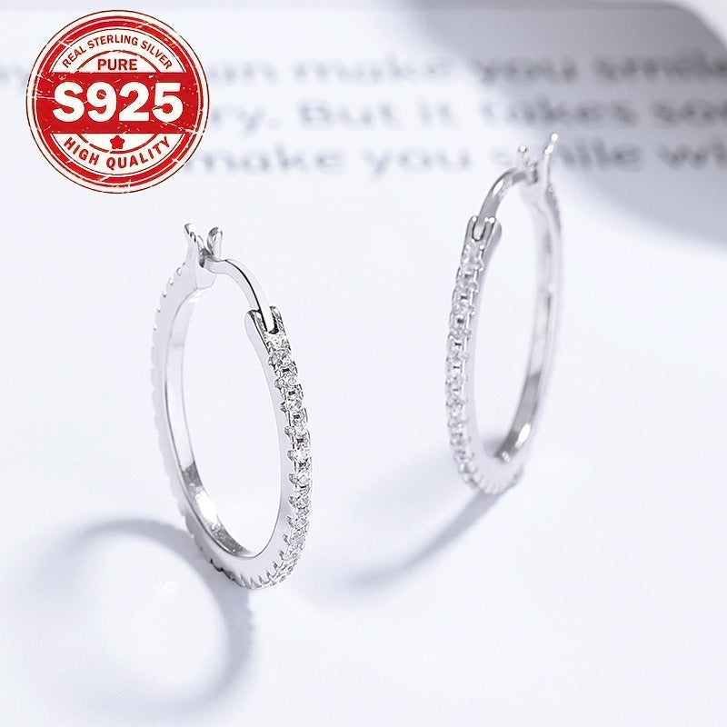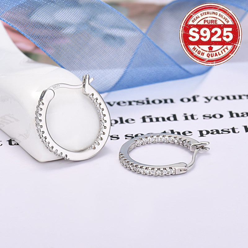 Stunning 925 sterling silver hoop earrings with synthetic zirconia and rhodium plating. These earrings are nickel lightweight and perfect for weddings and Valentine's gifts.