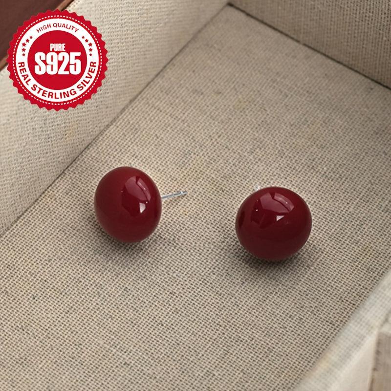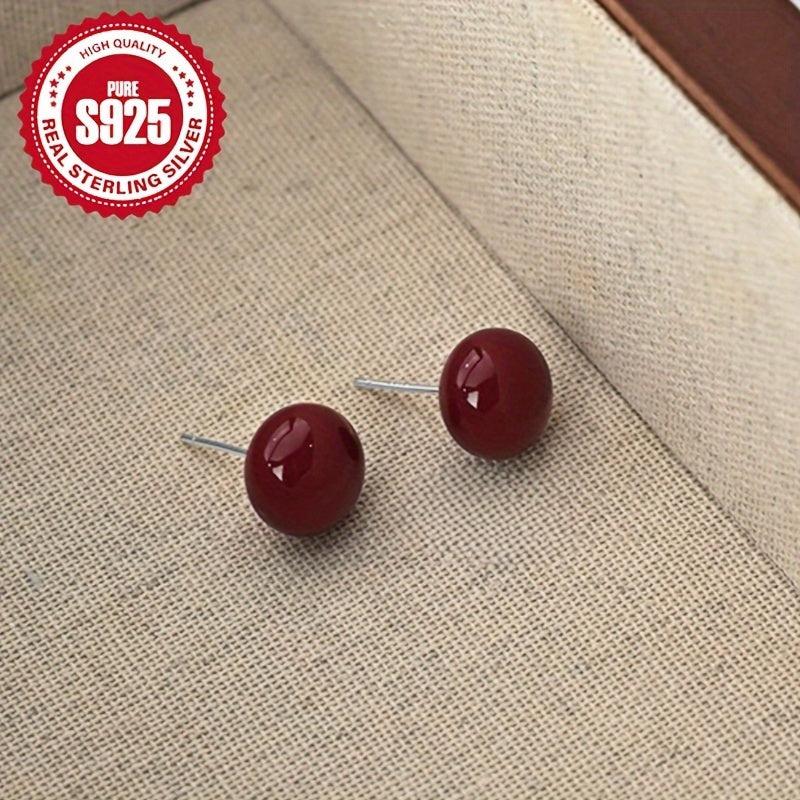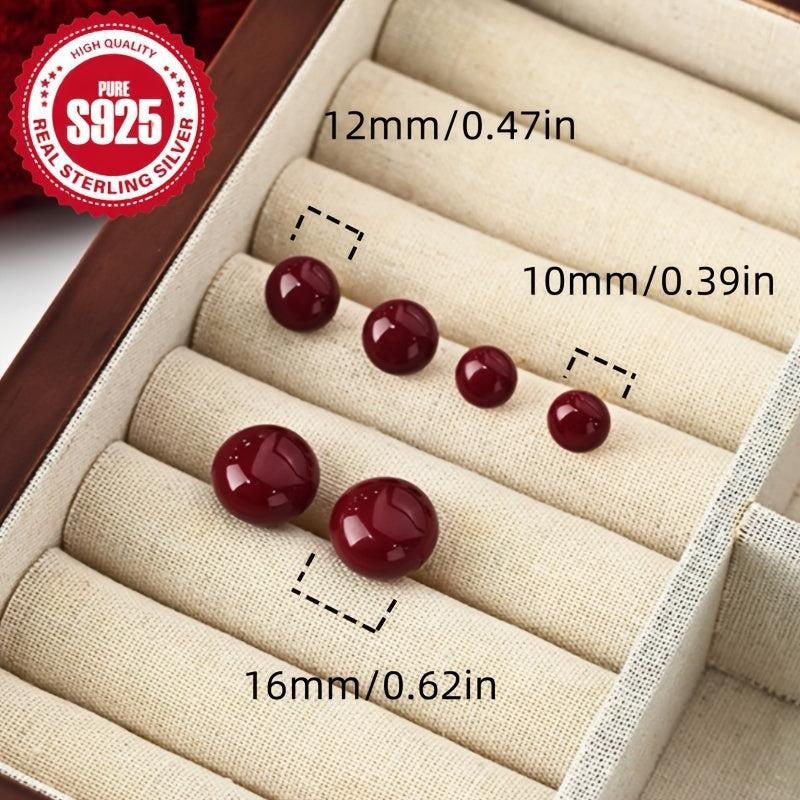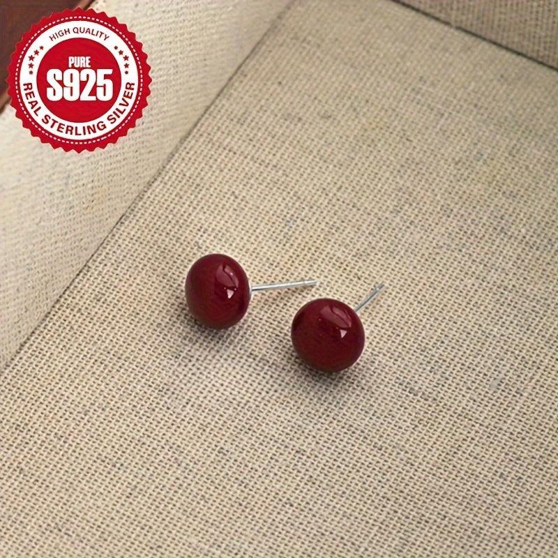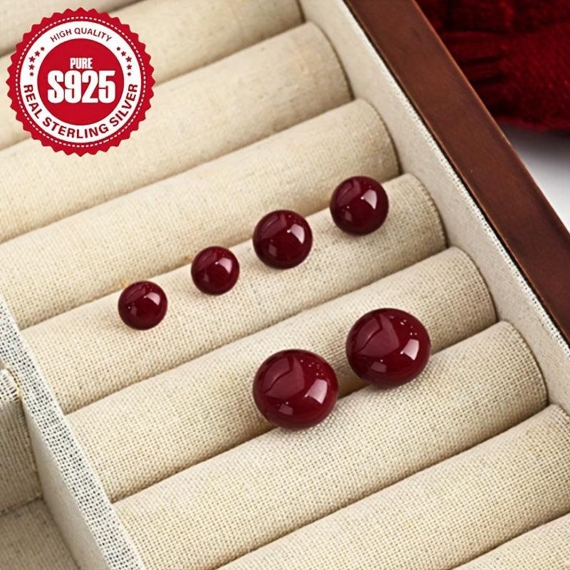 925 Silver Red Bean Oval Earrings Hypoallergenic Ideal for Holidays