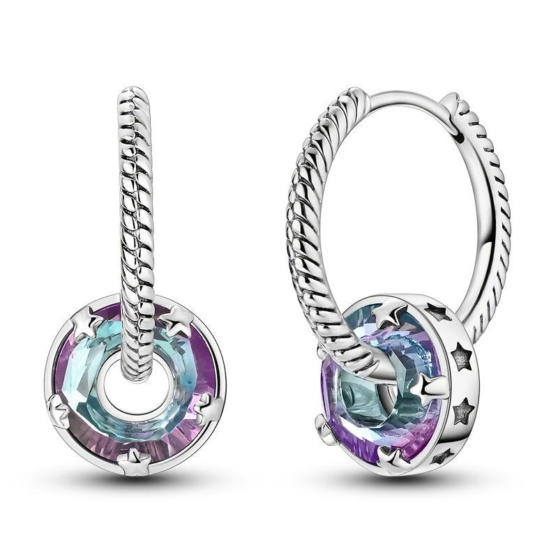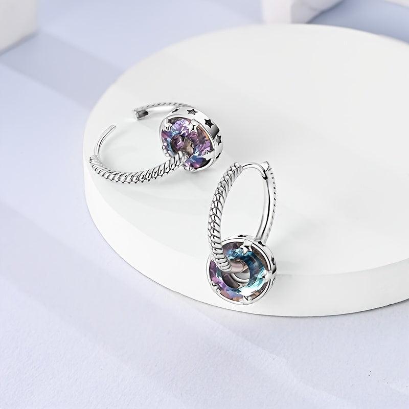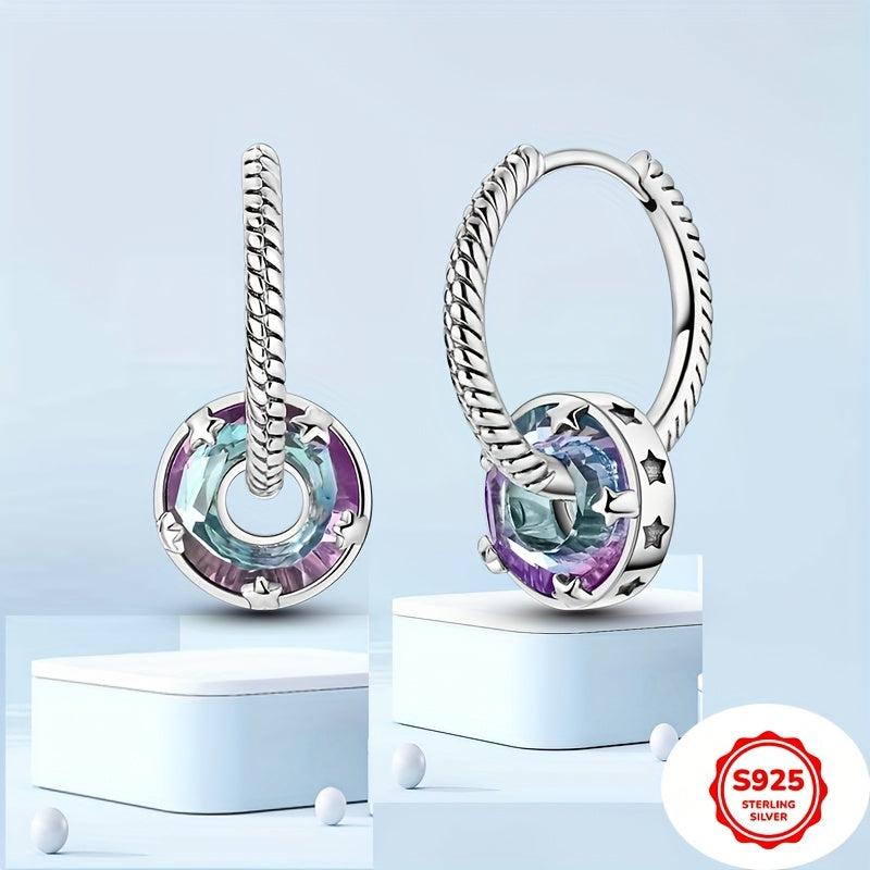 925 Silver Starlight Hoop Earrings Wedding Party Fine Jewelry