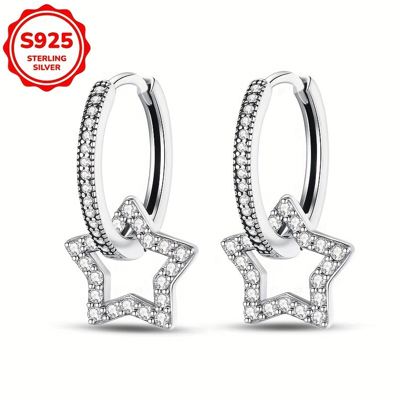 925 Silvery High Women's Dangle Earrings Star Earrings - Couple Gift