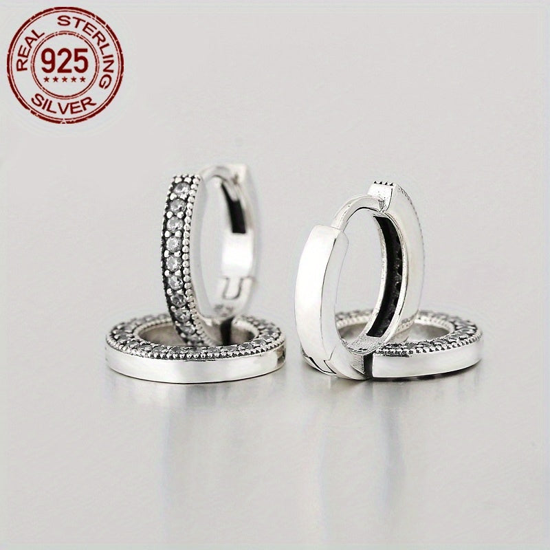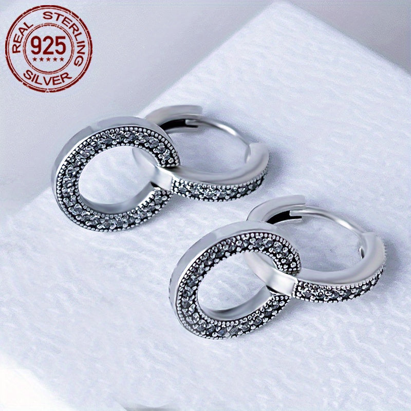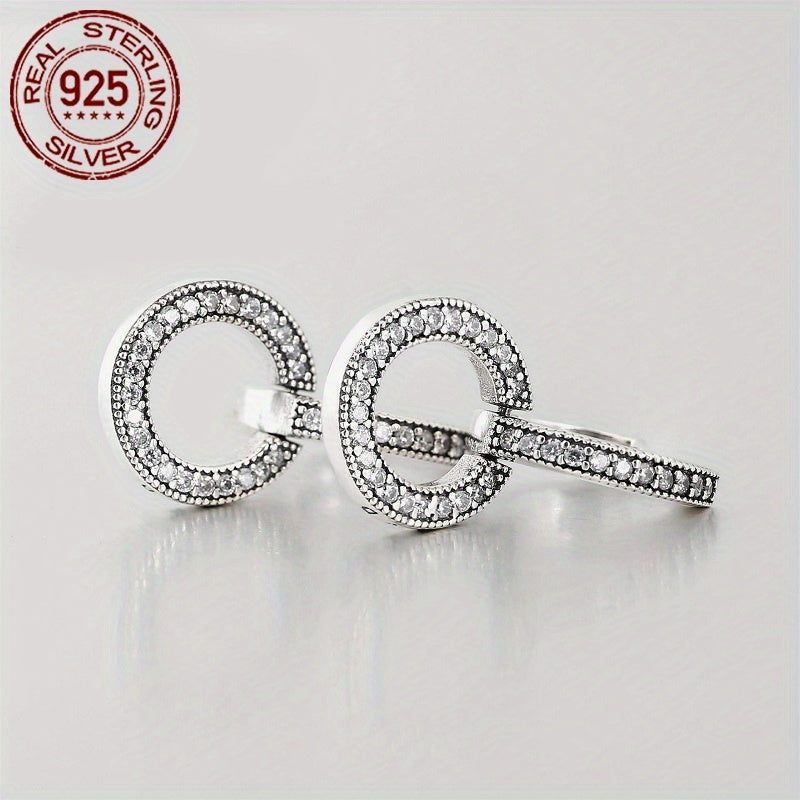 These hypoallergenic earrings are made of 925 sterling silver and feature a bright circle design with sparkling zirconia stones. Perfect for gifting on weddings or parties.