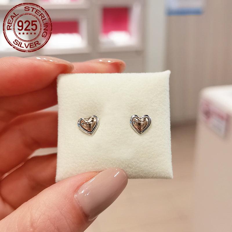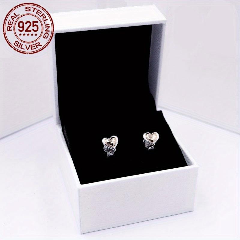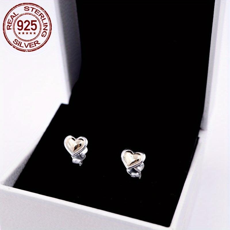 925 Sterling Silver Heart Earrings Golden Sparkly Zirconia Hypoallergenic
