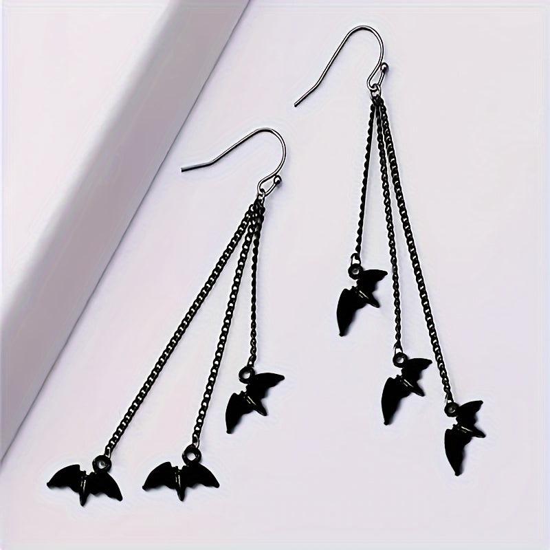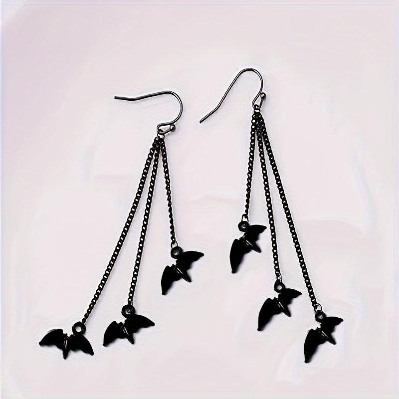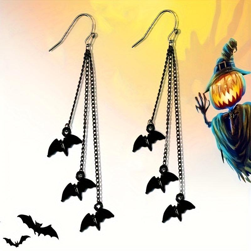 Enhance your spooky Halloween look with these bat earrings. Perfect for dark themed holiday parties and as a gift for women.