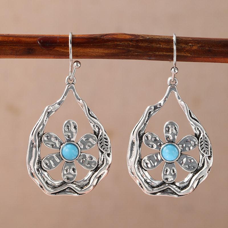 These vintage-inspired water droplet shaped pendant earrings showcase a bohemian style with beautiful flowers. Perfect for women's wear and a great addition to any outfit.
