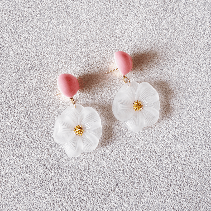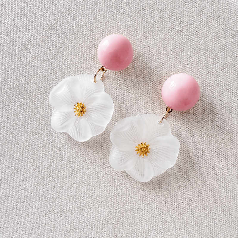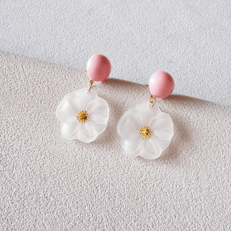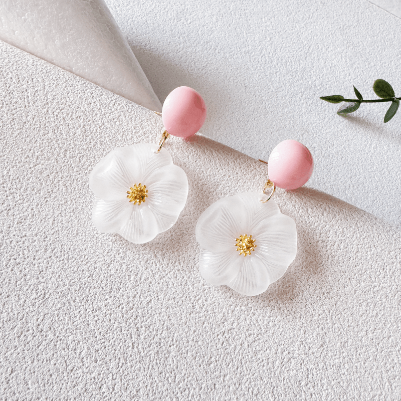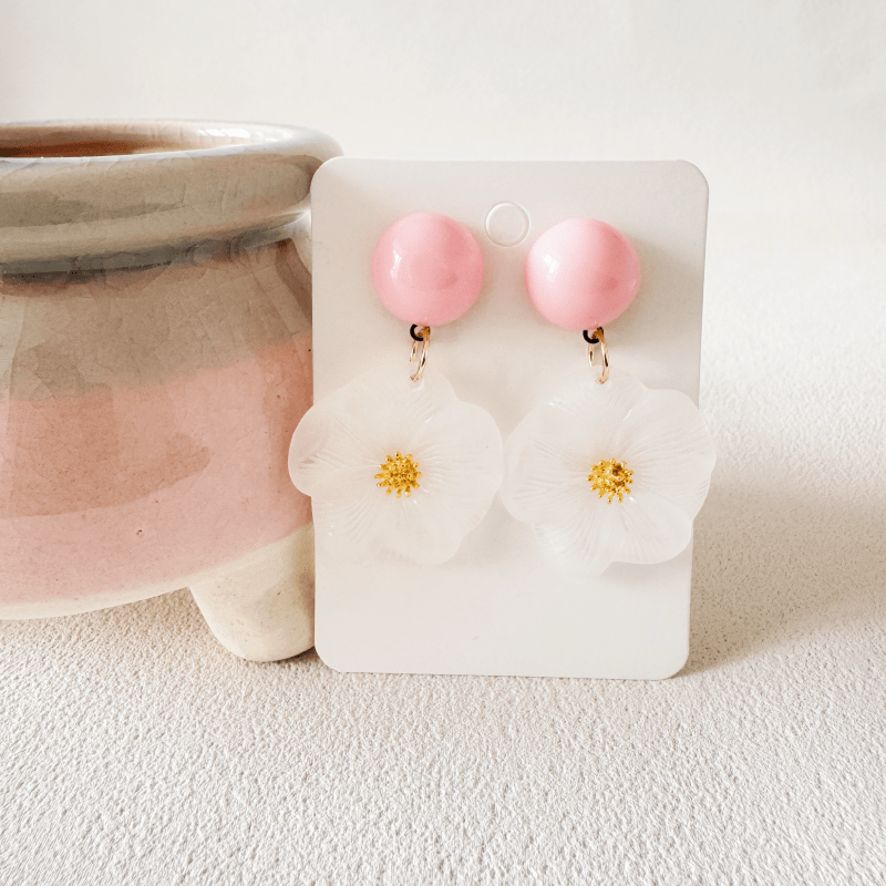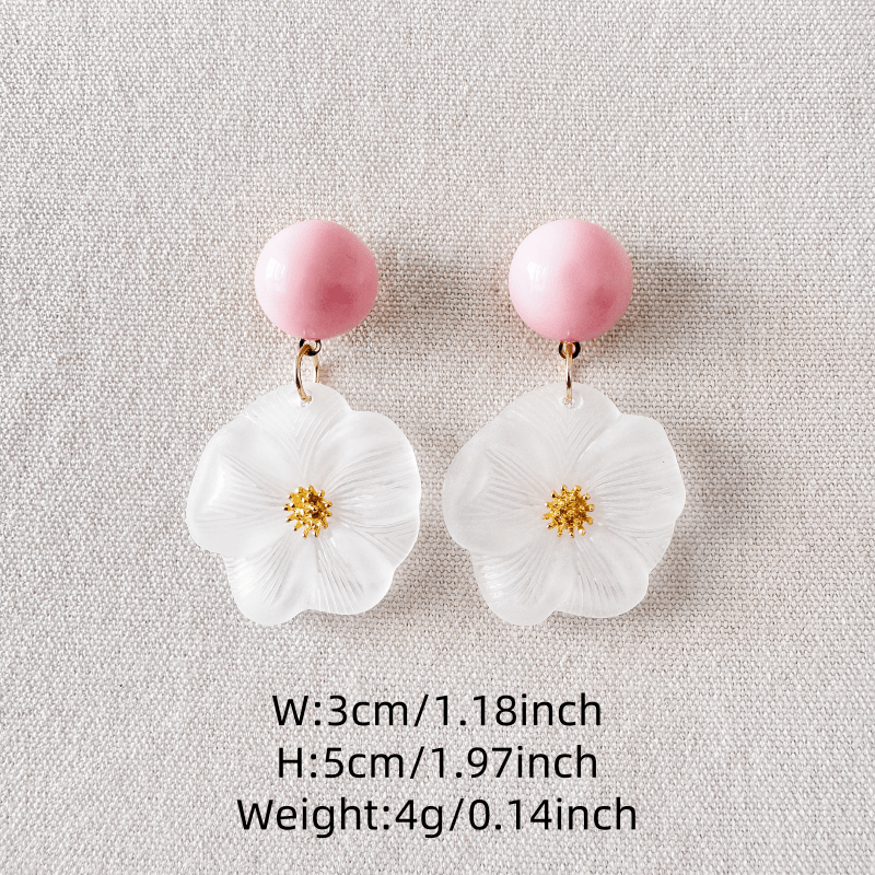 Chic boho-inspired earrings featuring flowers with golden stamens and pink balls on iron posts. Ideal for daily wear, mother's day, and festive occasions.