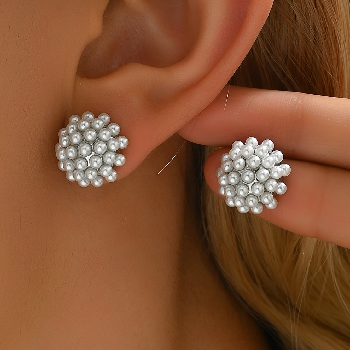 Elegant and versatile faux pearl stud earrings suitable for daily wear and parties. Add a touch of boho chic to your outfits.