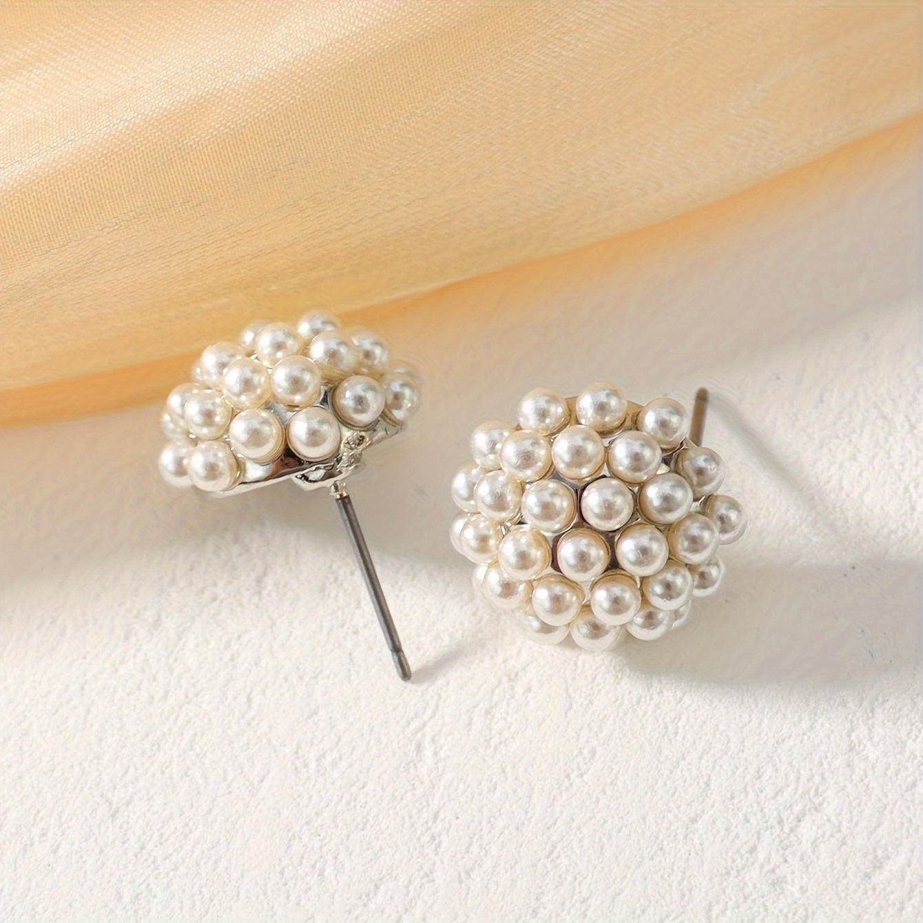 Boho Half Dome Faux Pearl Stud Earrings Women's Jewelry