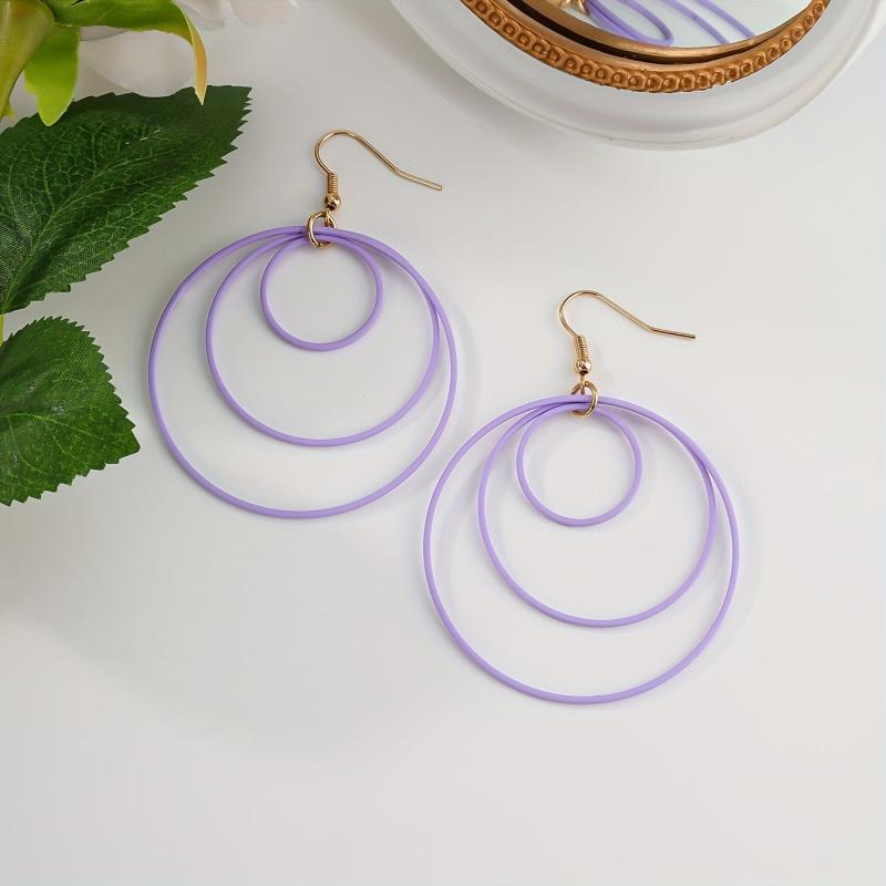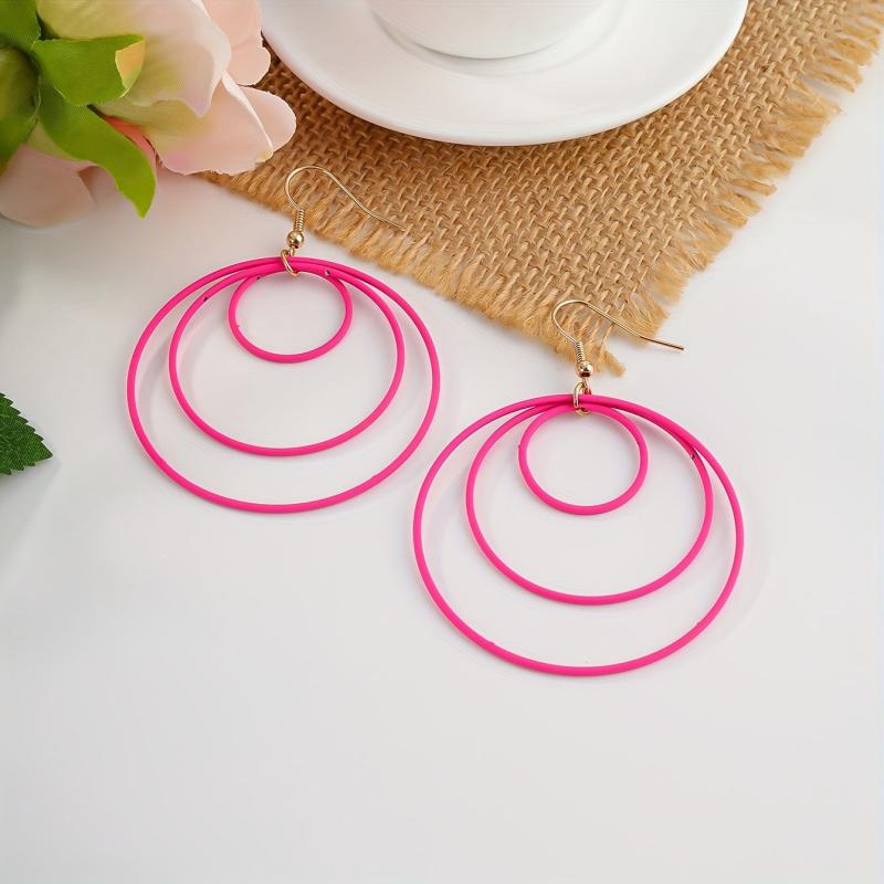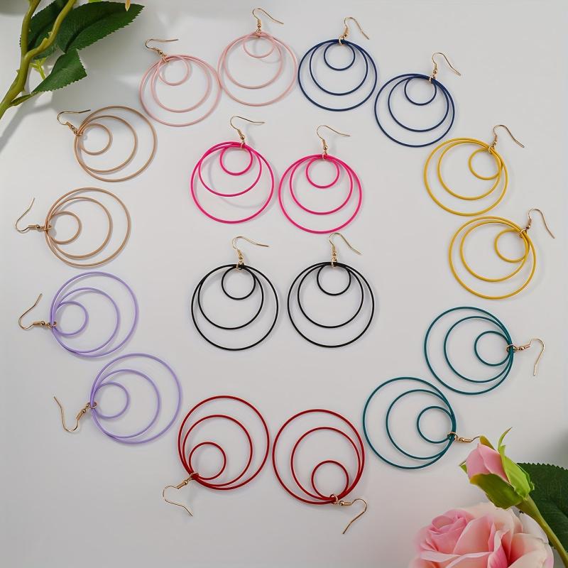 Boho Layered Hoop Earrings Geometric Hollow Circles Pink Yellow Purple Teal Red