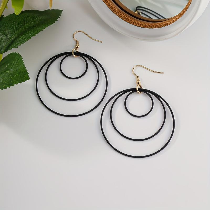 Add a bohemian touch to your look with these retro geometric layered hoop earrings. Featuring hollow circular options in various colors, these earrings are versatile for daily wear and special occasions.