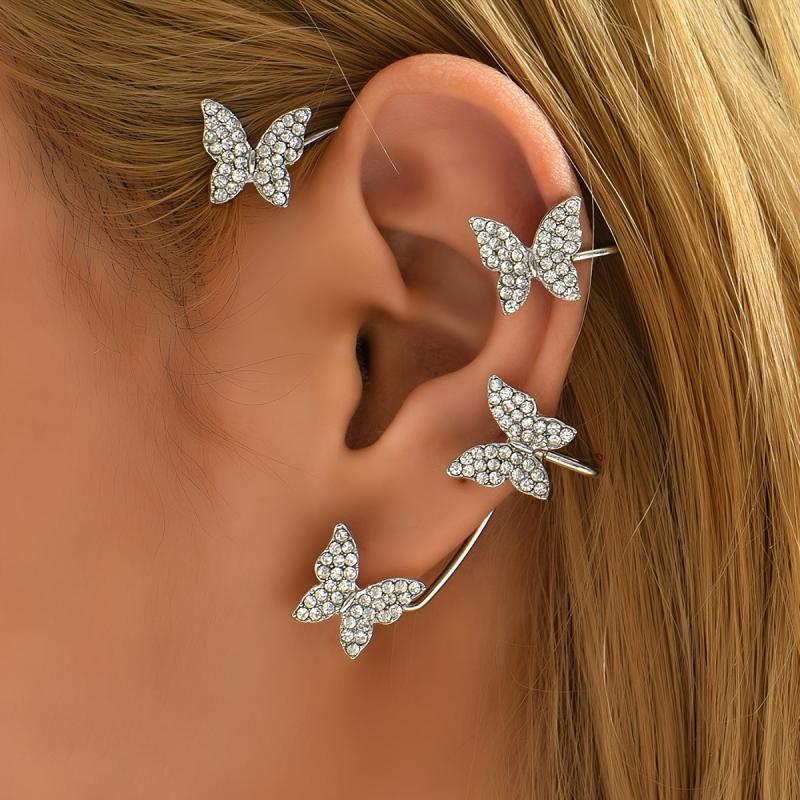 These butterfly earrings feature exquisite Moissanite inlays that add a touch of elegance to any outfit. No piercing required, thanks to the ear clips. The simulated zirconia decoration adds a timeless and stylish element.