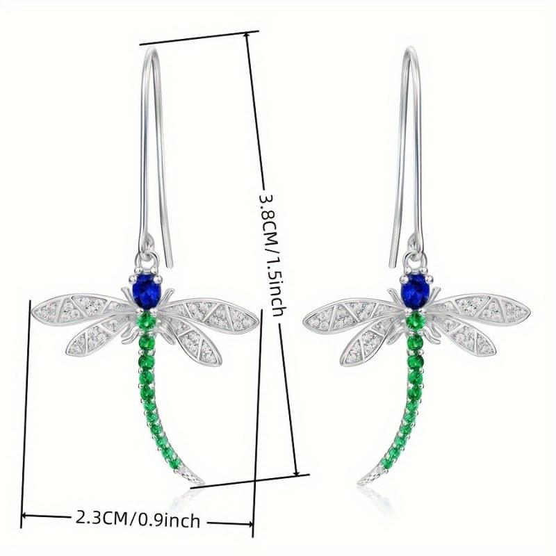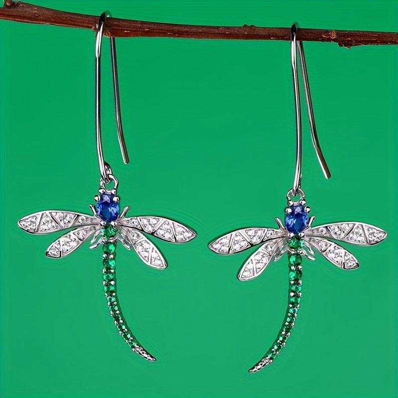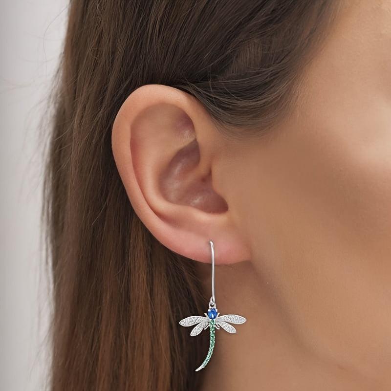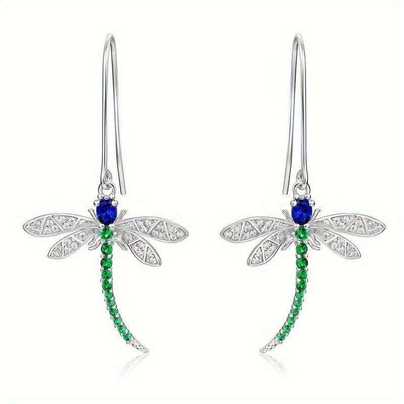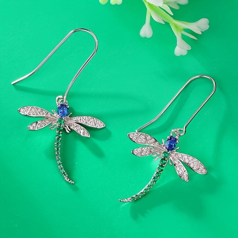 Dragonfly Drop Earrings with Green Zirconia Stone for Women