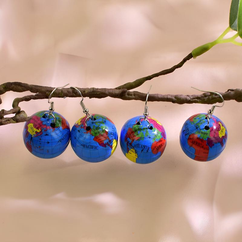 Earth Dangle Earrings with Colorful Continents - Summer Jewelry