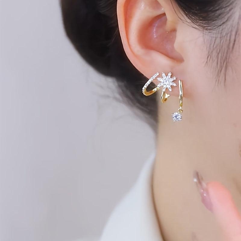 Add a touch of sparkle to your look with these elegant stud earrings featuring an eight petal star design. Perfect for everyday wear or formal occasions.