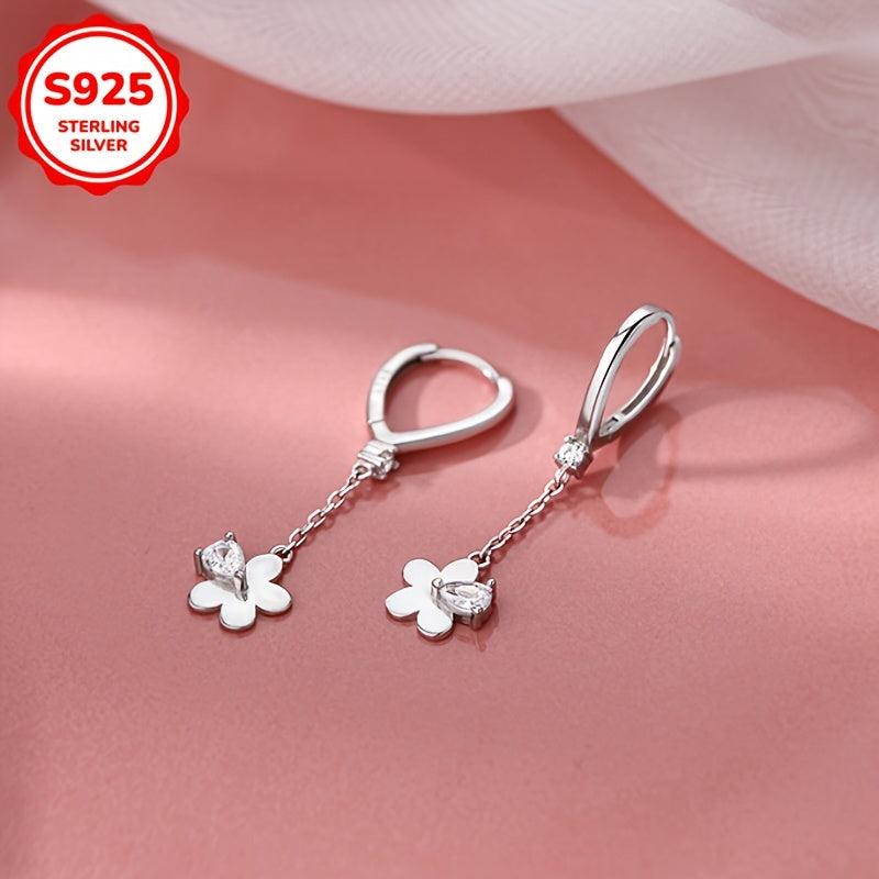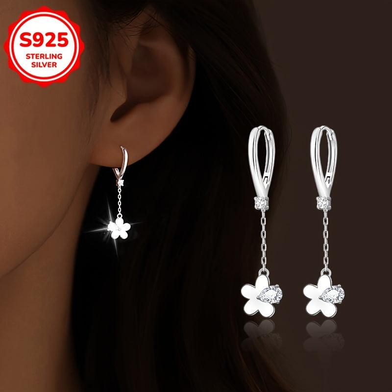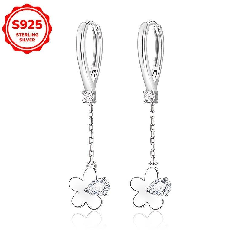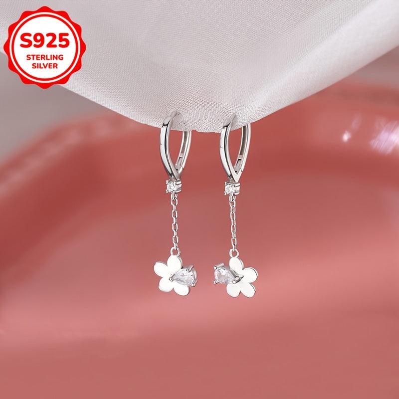 Upgrade your daily commuting look with these fashionable hanging earrings for women. The earrings are inlaid with stunning Synthetic Zirconia flowers and crafted from 925 silver, weighing just 2g.
