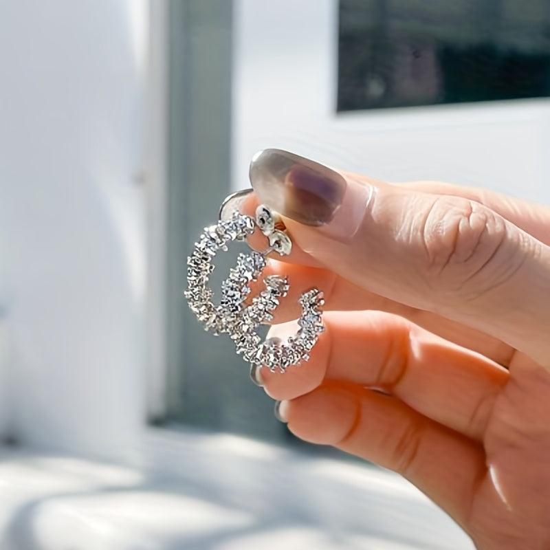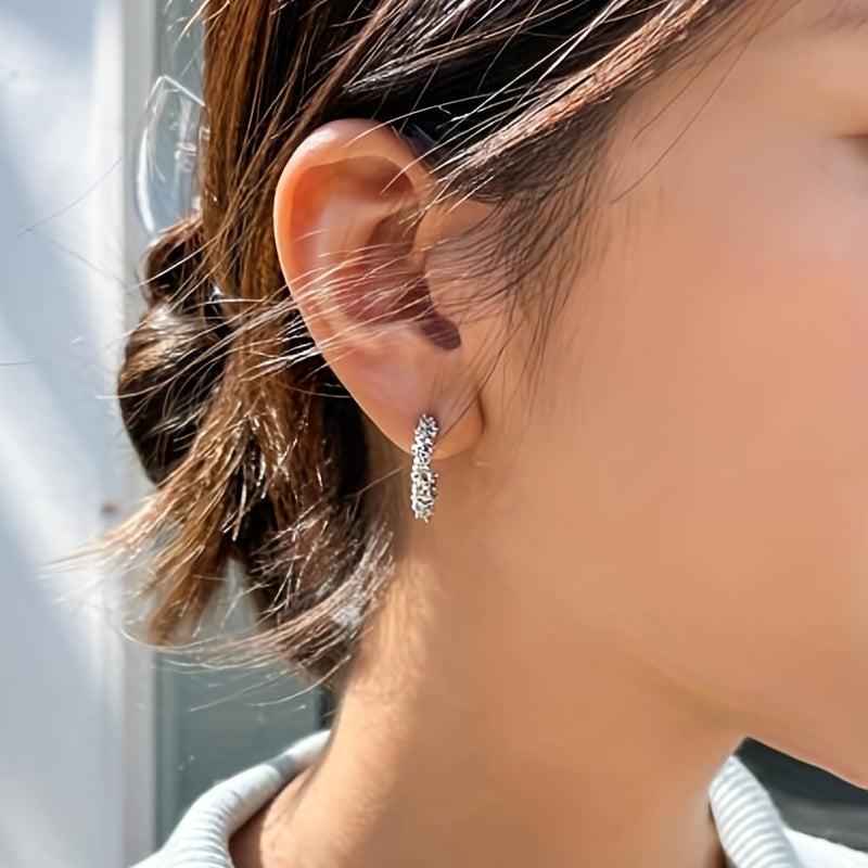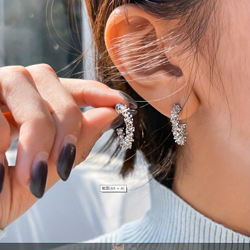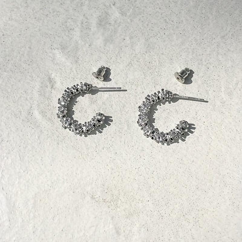 Adorn your ears with these stylish silvery C-shaped earrings that exude elegance.