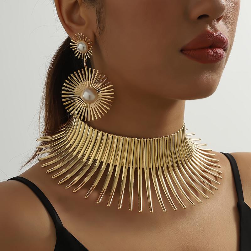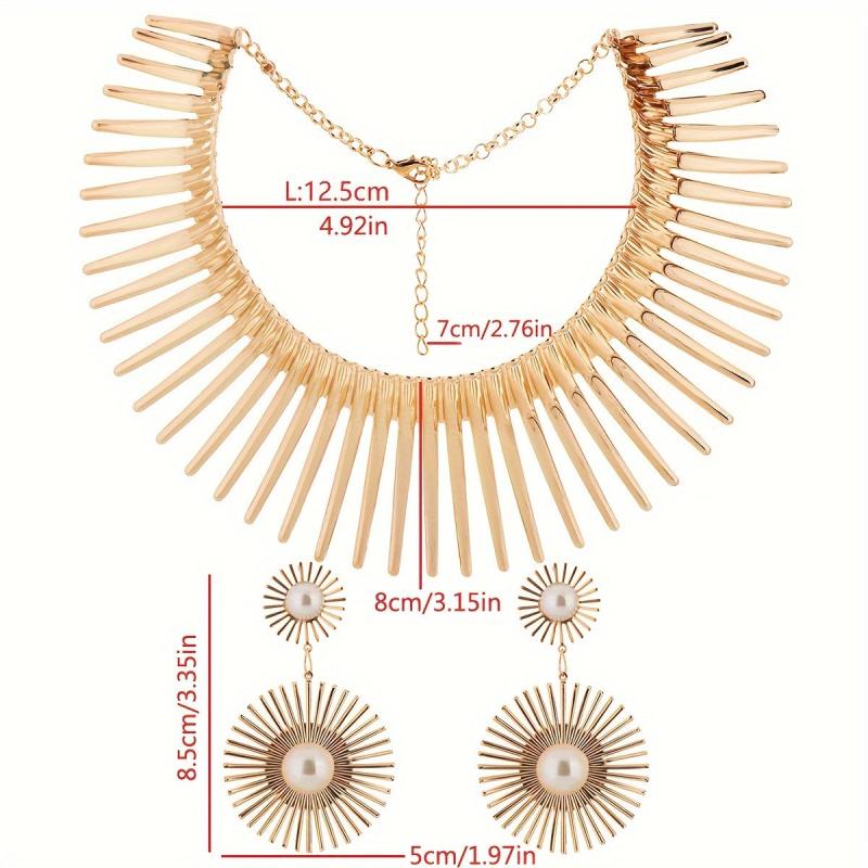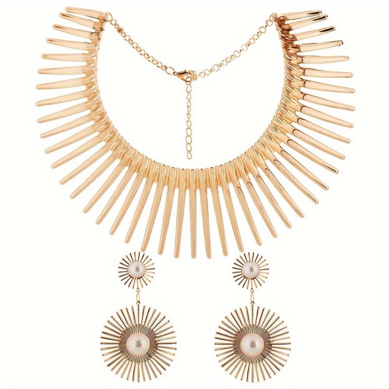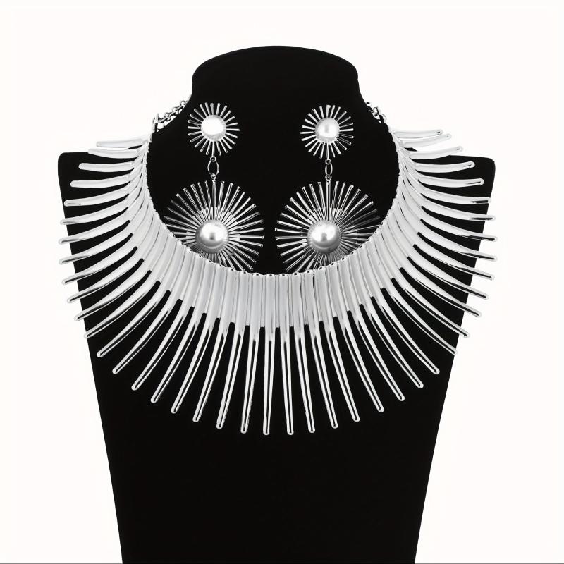 Make a fashion statement with this stylish and eye-catching earring set featuring an exaggerated flowering sun collar design.