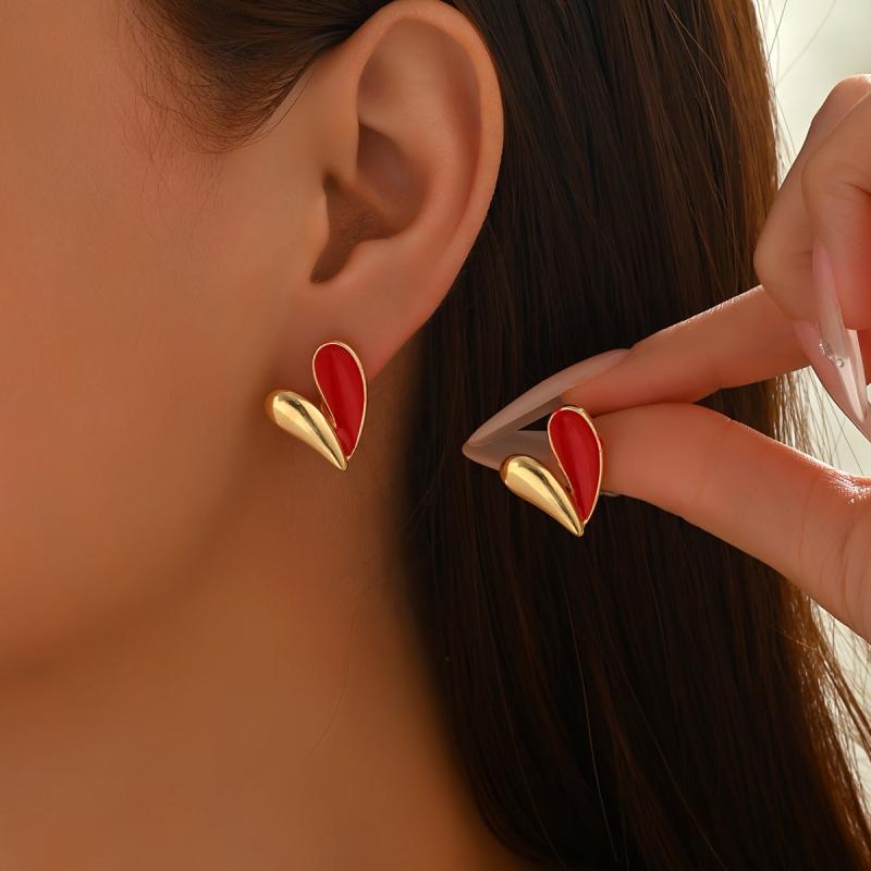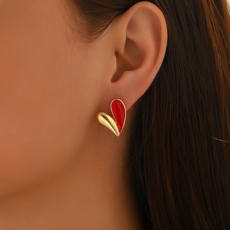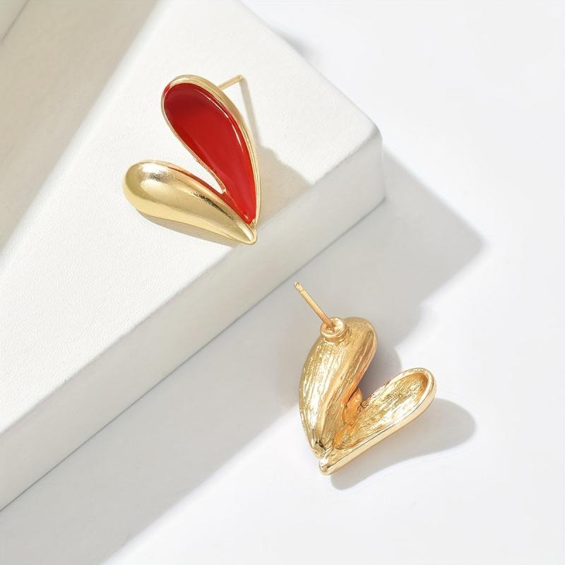 These romantic heart earrings are perfect for adding a touch of vintage charm to your casual attire. The asymmetrical design features red and golden tones, while the hypoallergenic 316 stainless steel posts ensure comfort and durability.