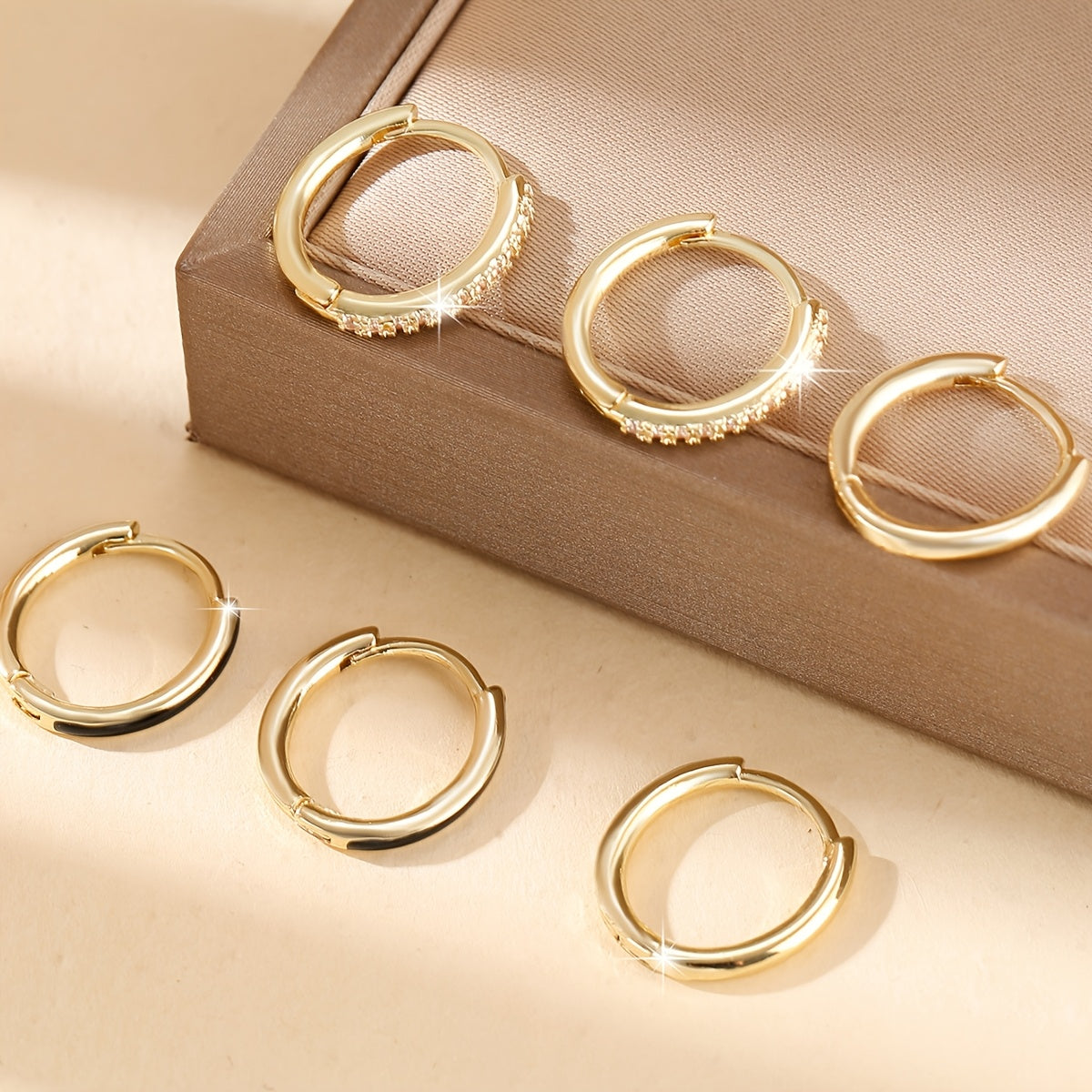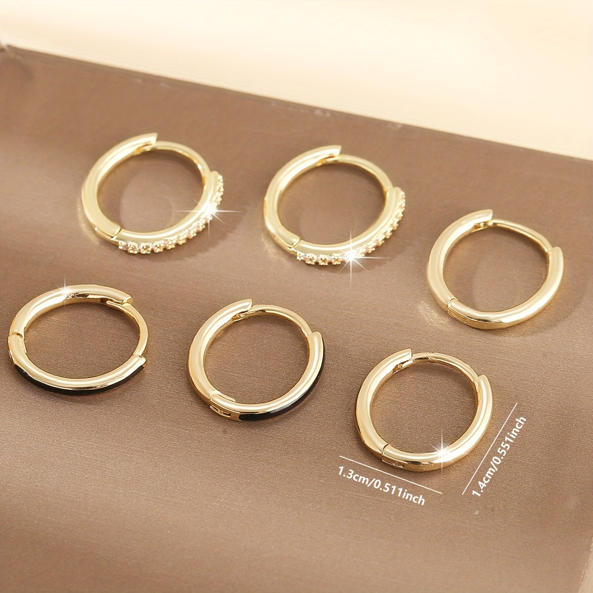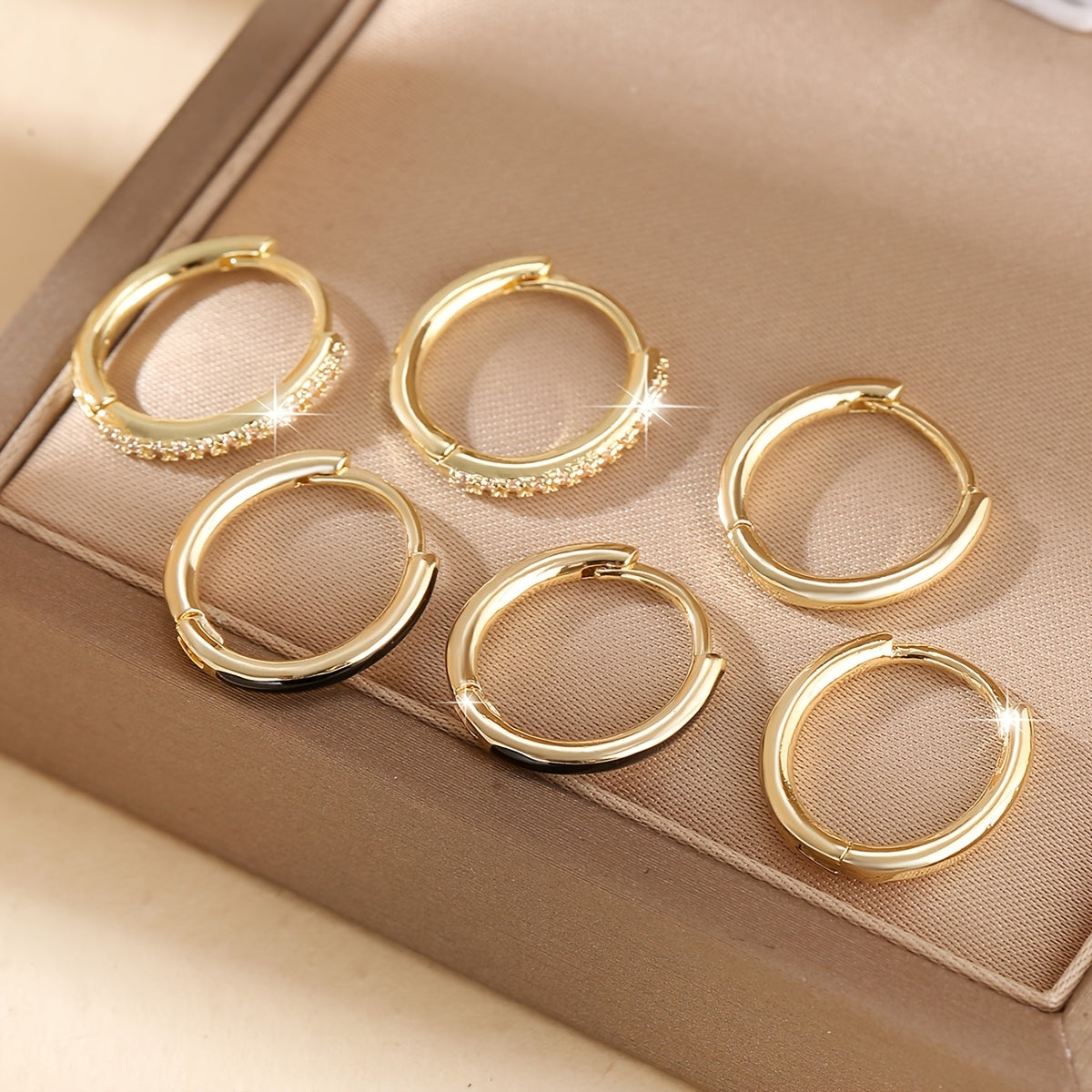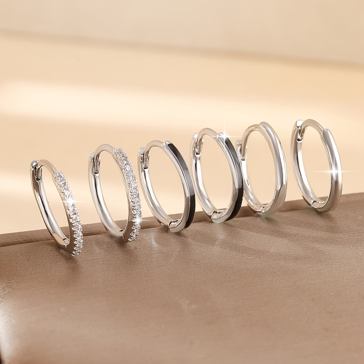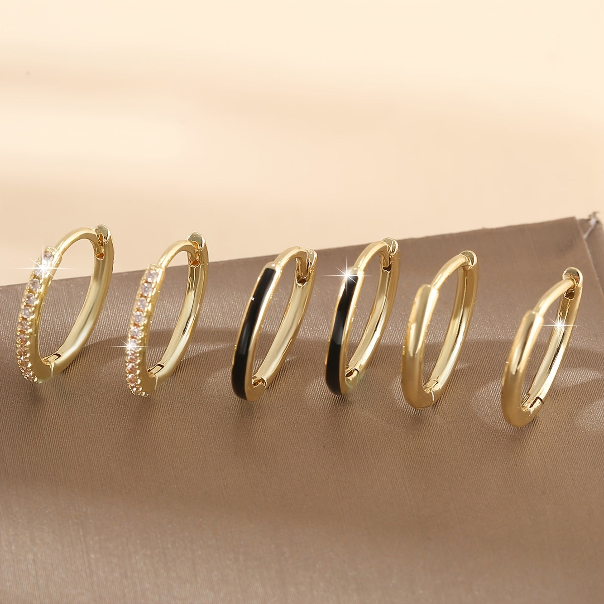 Add a touch of Y2K style to your look with this set of 6 geometric egg-shaped hoop earrings featuring synthetic zirconia accents. Made of copper with nickel plating, these earrings are perfect for daily wear or as a gift for a fashionable woman.