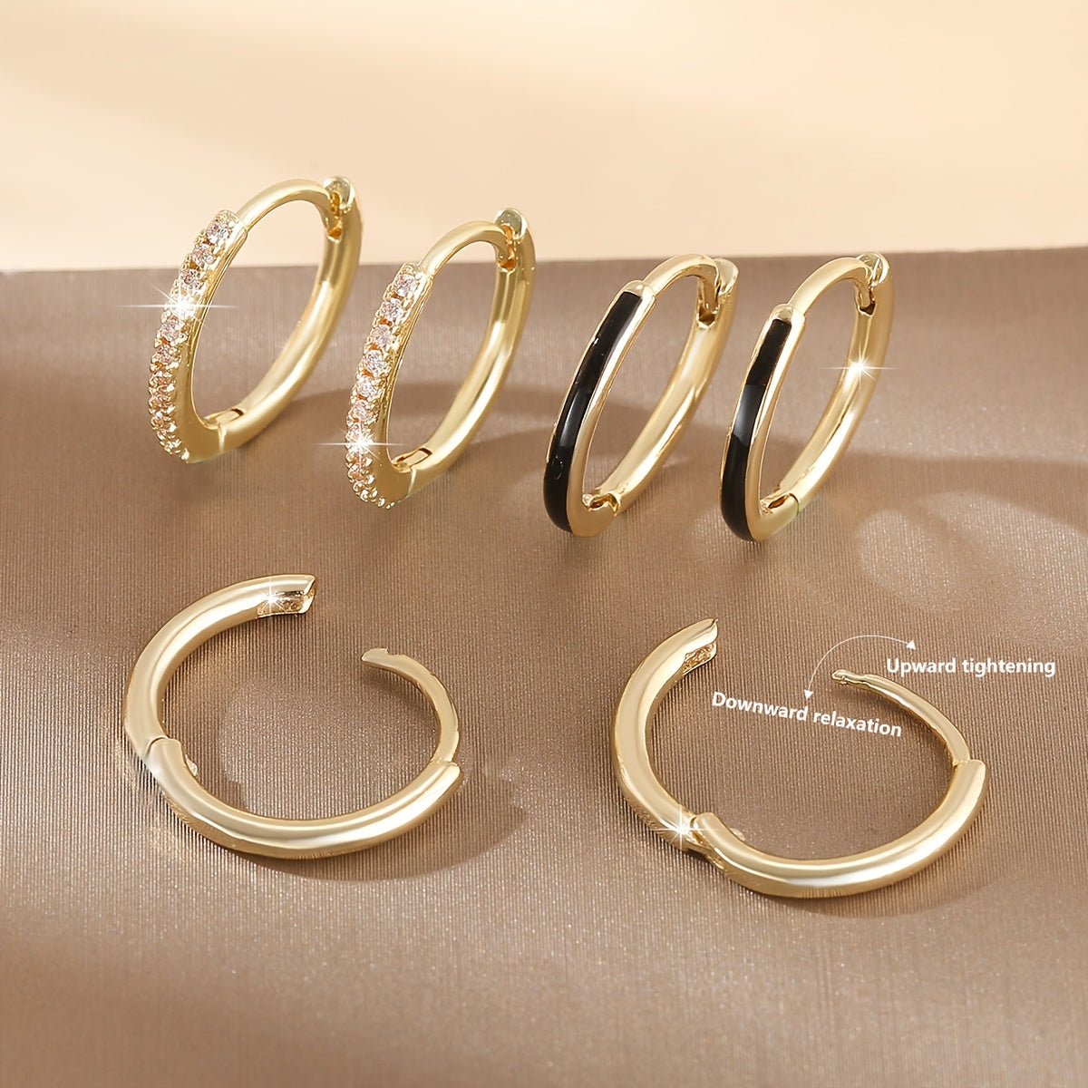 Geometric Egg Shaped Hoop Earrings Set with Zirconia - Y2K Style Gift for Women