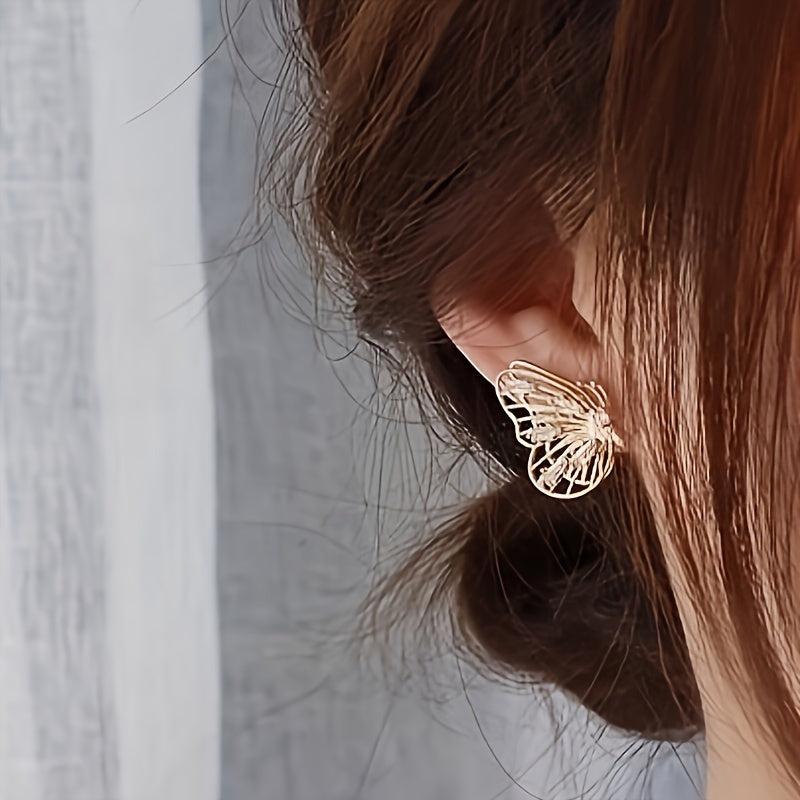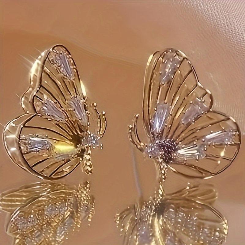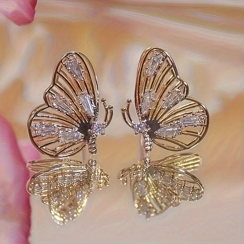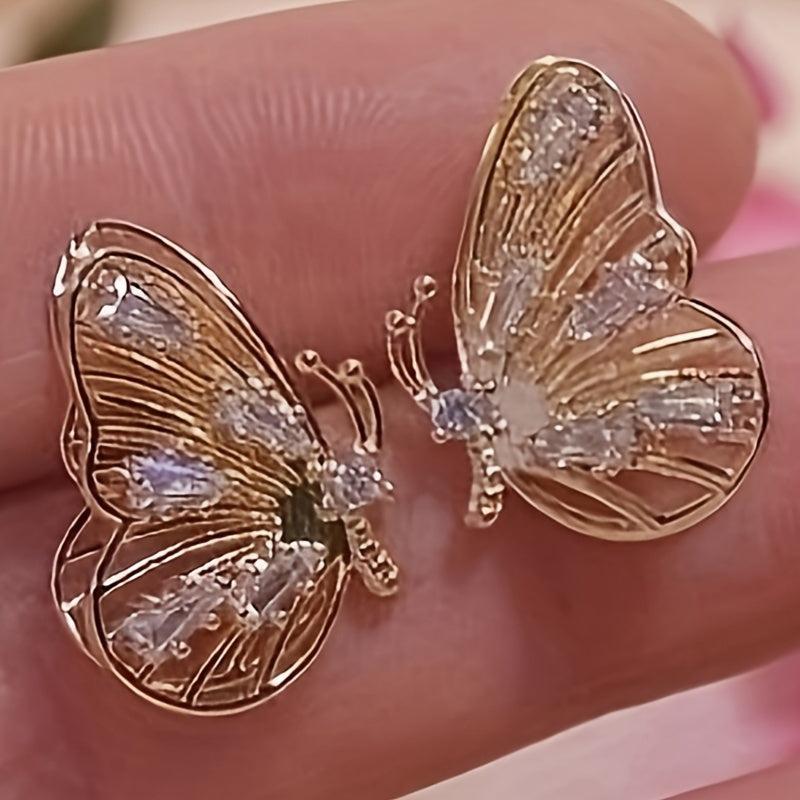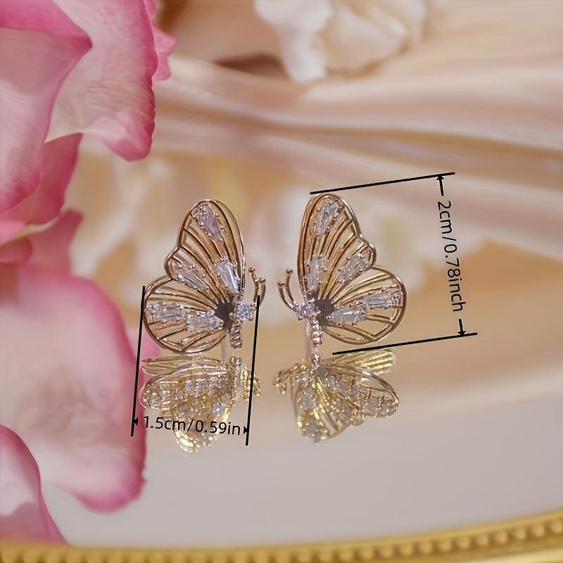 Elegant butterfly stud earrings with nickel plated copper and synthetic zirconia, perfect for Valentine's Day and all seasons. Ideal for daily wear.