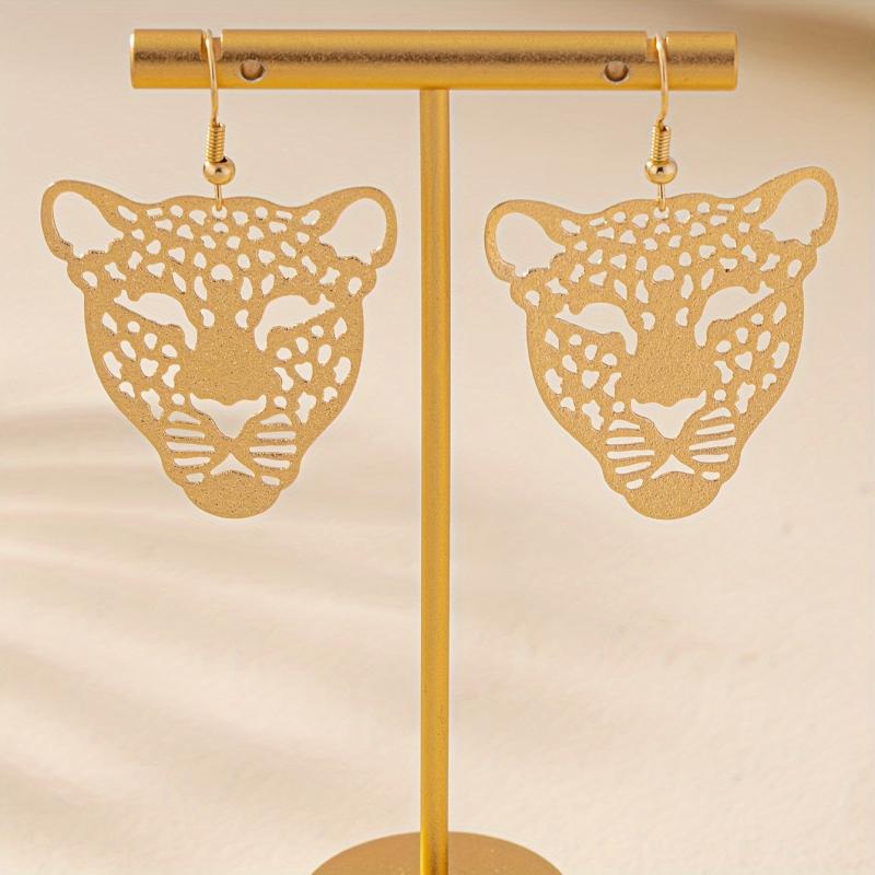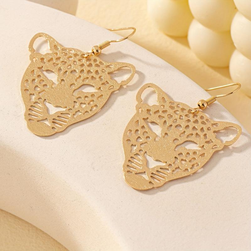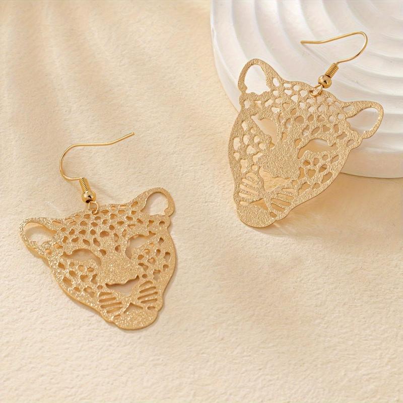 Golden Leopard Earrings, Exaggerated Hollowed Out Design