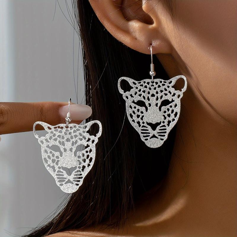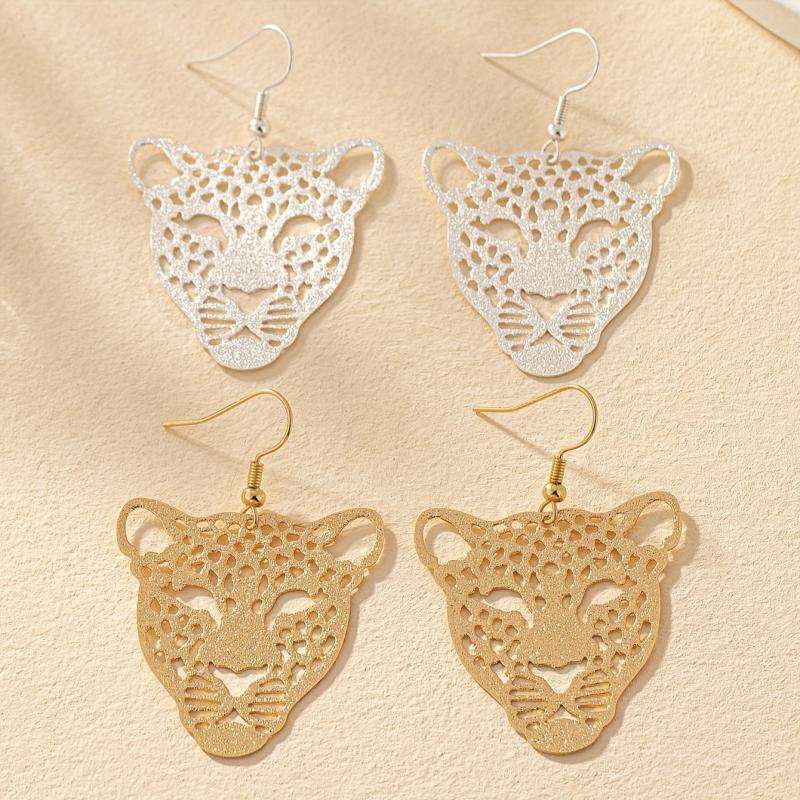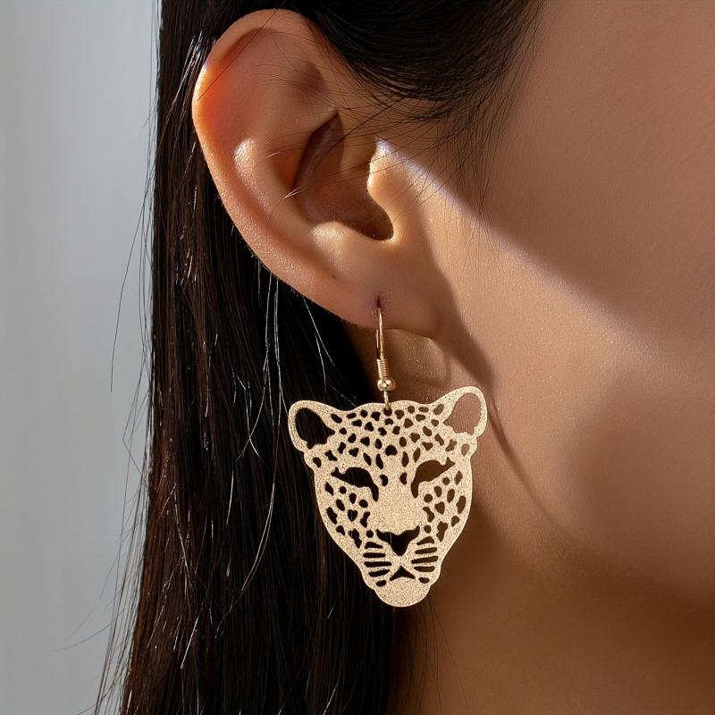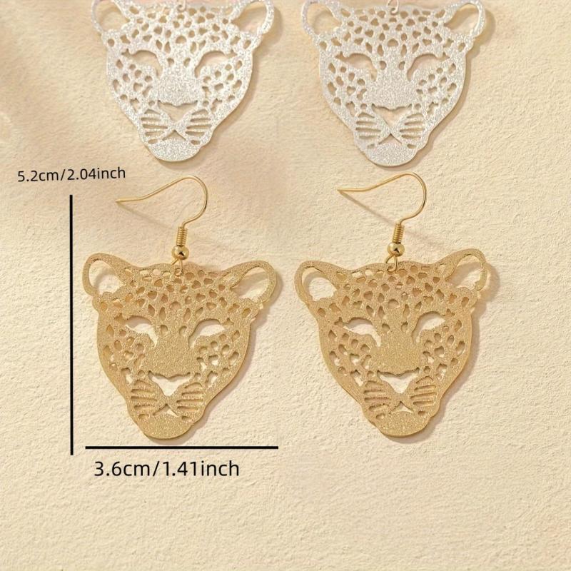 Make a fashion statement with these stunning golden leopard-shaped earrings. The exaggerated and hollowed out design adds a touch of glamour to any outfit.